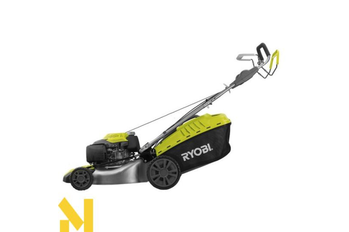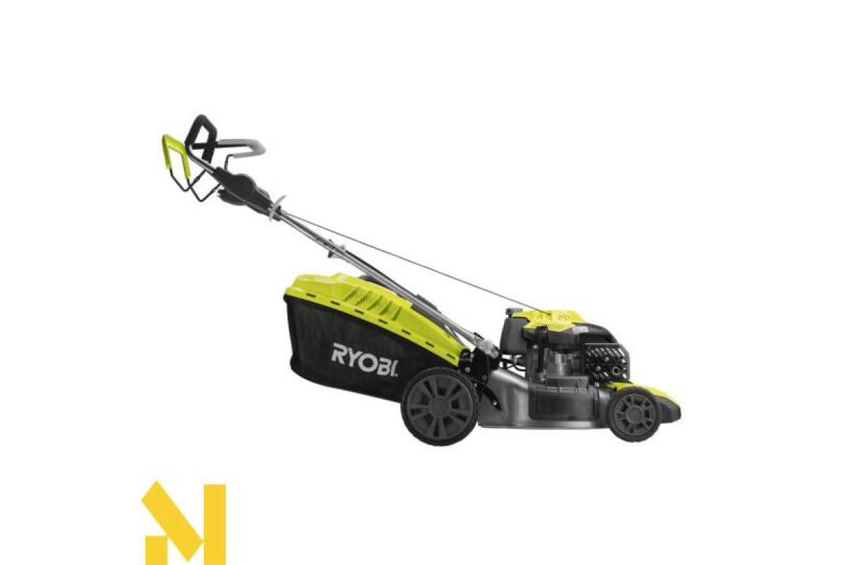 - Особливості: травозбірник з жорстким верхом, захисний бампер, штуцер для підключення шланга, задні колеса великого діаметру, задній викид, ергономічна ручка