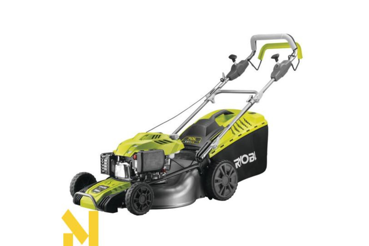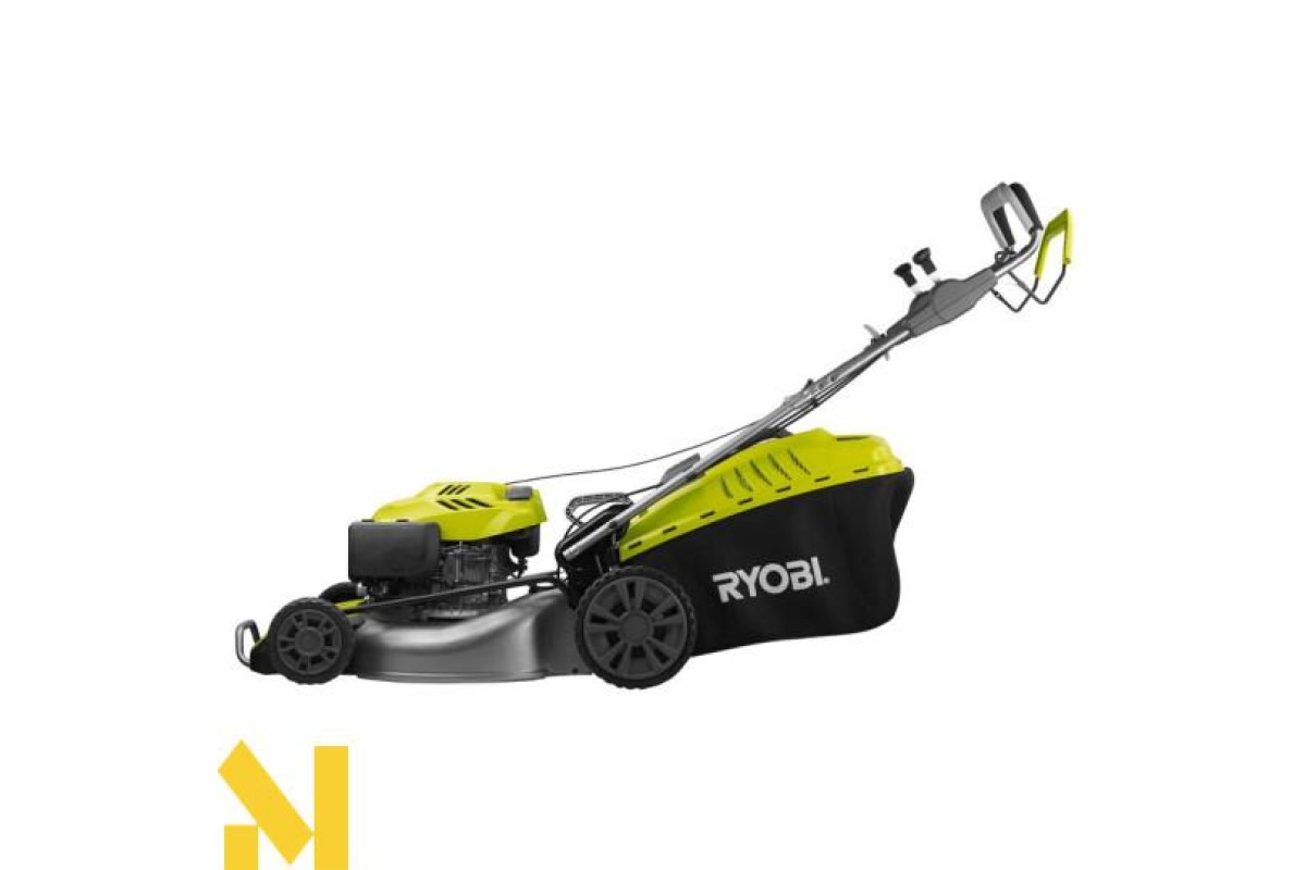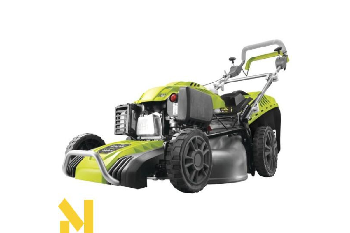 - Особливості: травозбірник з жорстким верхом, захисний бампер, штуцер для підключення шланга, задні колеса великого діаметру, регулювання швидкості, задній викид, ергономічна ручка