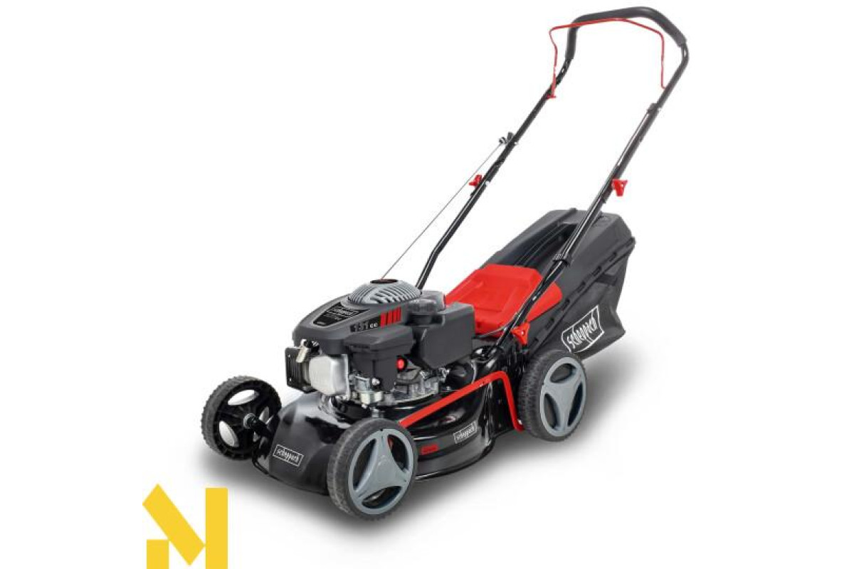 MP132-42 - найкомпактніша бензинова газонокосарка від Scheppach, зручна та маневрена, ідеально підходить для невеликих садів. Зручна ручка та великі колеса на шарикопідшипниках забезпечують комфортне керування на рівній поверхні.