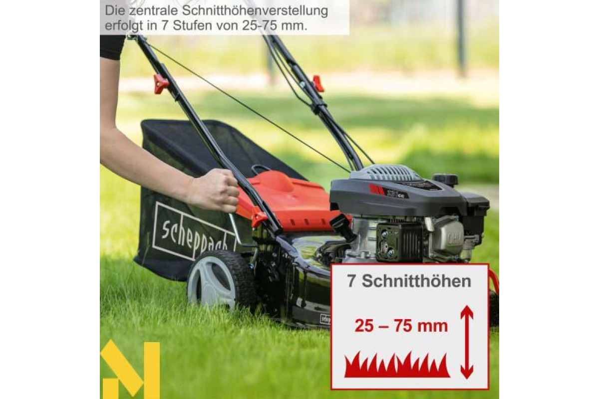 Бензинова газонокосарка MS132-42 від Scheppach ідеально підходить для невеликих садів. Завдяки ширині скошування 42 см вона особливо маневрена, а самохідні колеса на кулькових підшипниках забезпечують легке косіння. Окрім косіння з травозбірником або без нього, MS132-42 також підходить для мульчування. Вбудована функція очищення дозволяє легко чистити сталевий корпус після використання.