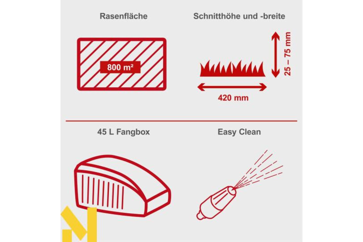 Зручне скошування завдяки самохідному приводу – для бездоганного, пишного зеленого газону. З MS132-42 від Scheppach скошування газону відбувається швидко. Ця особливо легка та міцна модель забезпечує легку роботу. Завдяки своїй маневреності MS132-42 ідеально підходить для невеликих газонів. Великі колеса на кулькових підшипниках роблять газонокосарку особливо плавною.