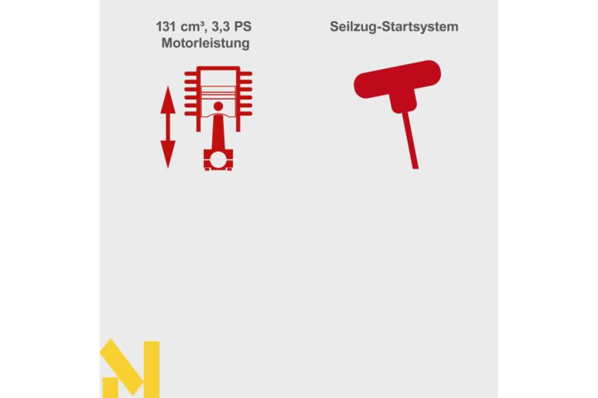 Потужний 4-тактний бензиновий двигун об'ємом 131 куб. см та потужністю 2,4 кВт (3,3 к.с.) і вузькою шириною зрізу 42 см, MS132-42 може впоратися навіть з трохи вищою рослинністю. Центральне регулювання висоти зрізу дозволяє вибрати одну з семи висот зрізу від 25 до 75 мм лише однією рукою.