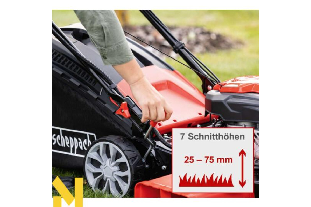 Бензинова газонокосарка Scheppach hybrid start MS225-56E від Scheppach з шириною зрізу 56 см ідеально підходить для великих садів із площею газону до 2200 м 2. Завдяки колісному приводу та електричному запуску газон косить практично сам. Ширина різання XXL економить час, а міцний травозбірник об’ємом 65 літрів зменшує кількість зупинок для спорожнення. Функція мульчування, 7-позиційне регулювання висоти зрізу від 25 до 75 мм і вбудована функція очищення забезпечують оптимальний догляд за газоном.