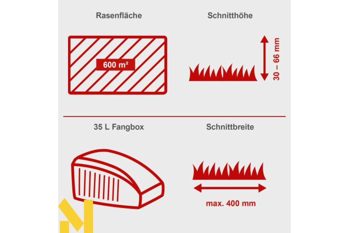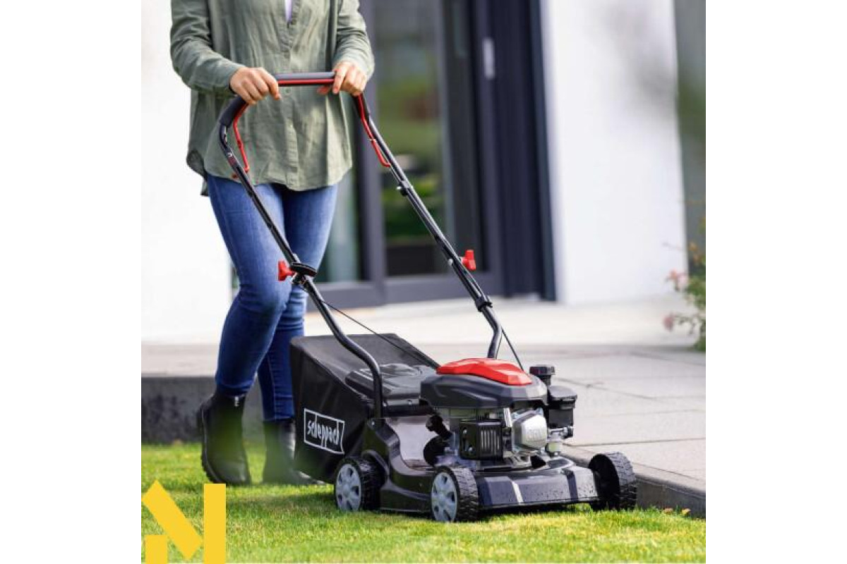 Бензинова газонокосарка Scheppach PML40-132P з шириною скошування 40 см підходить для садів з газонами площею до 600 м². Ця особливо легка та міцна модель забезпечує легку роботу завдяки своїй маневреності навіть на невеликих газонах.
