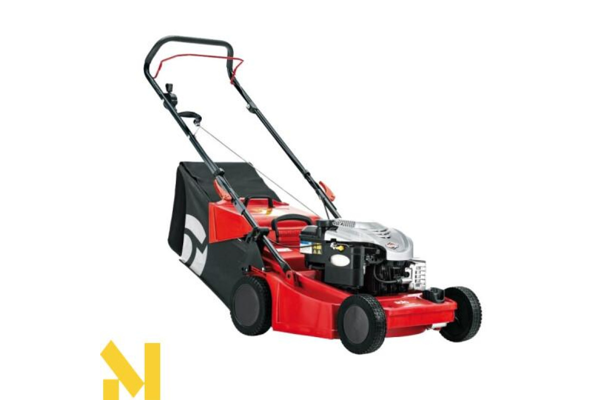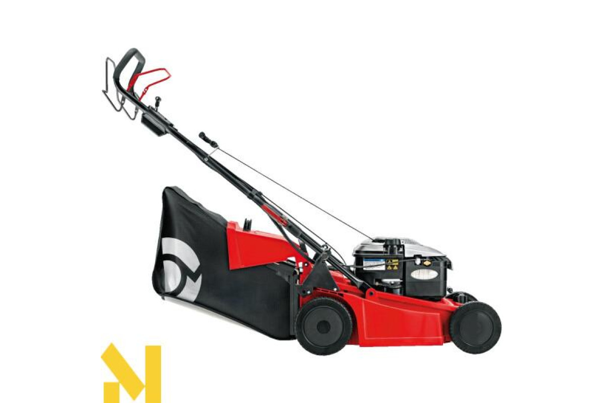 - Практична ручка для перенесення газонокосарки, а також важіль швидкої фіксації робочої ручки