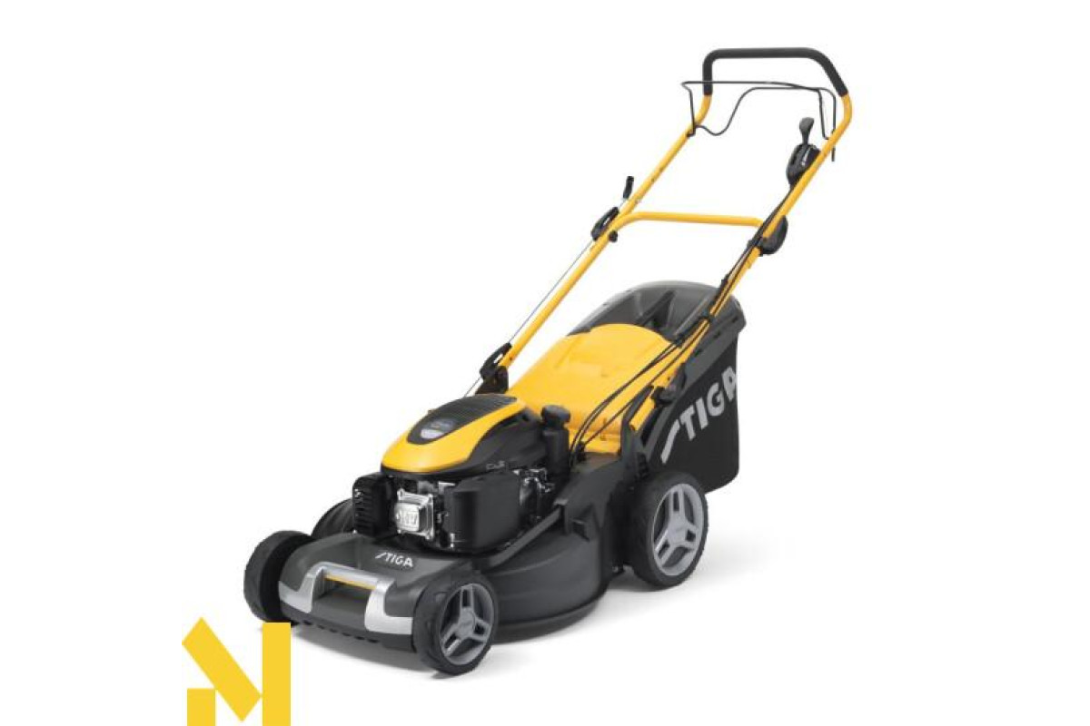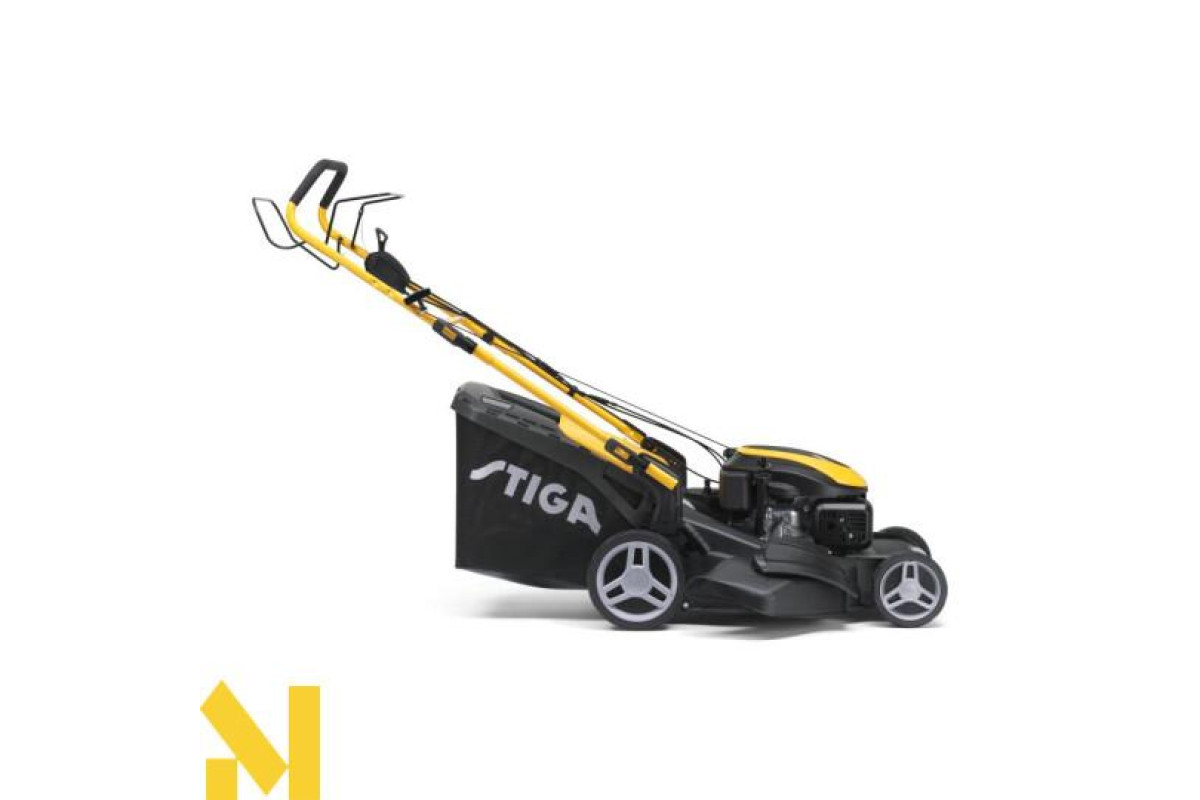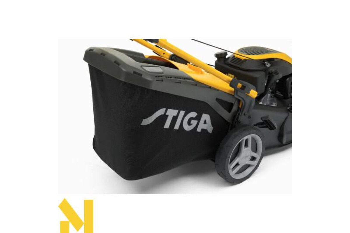 Самохідна газонокосарка з бензиновим двигуном STIGA об'ємом 166 куб. см з регулюванням частоти обертання. Система косіння 4-в-1: збір, мульчування, бічний викид і задній викид. Поставляється травосбірник на 70 літрів.