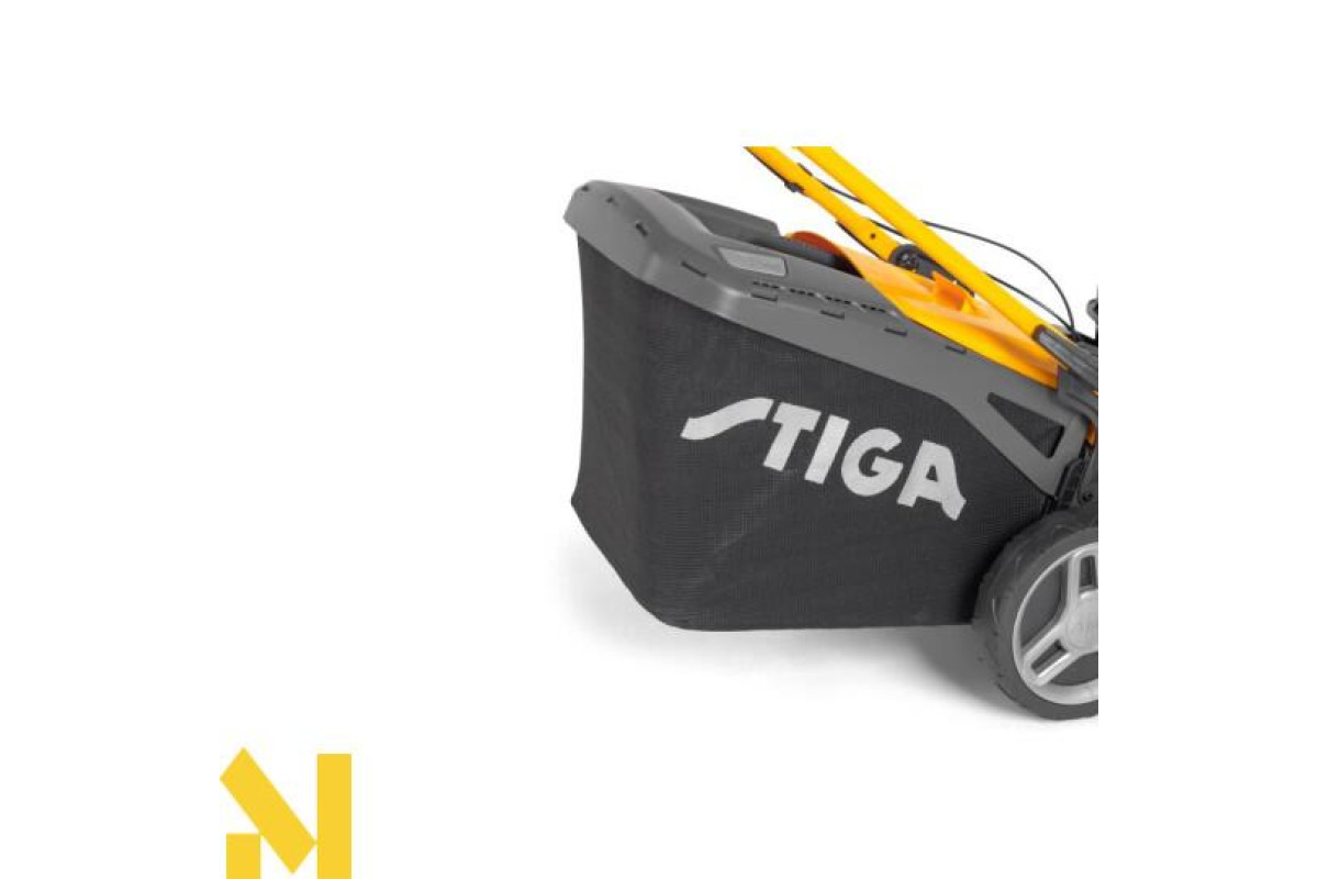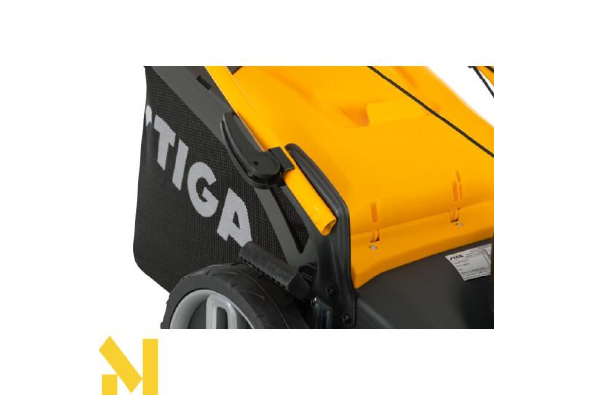 - Гібридний кошик вміщує до 70 літрів скошеної трави. Індикатор у верхній частині інформує про рівень наповнення кошика.