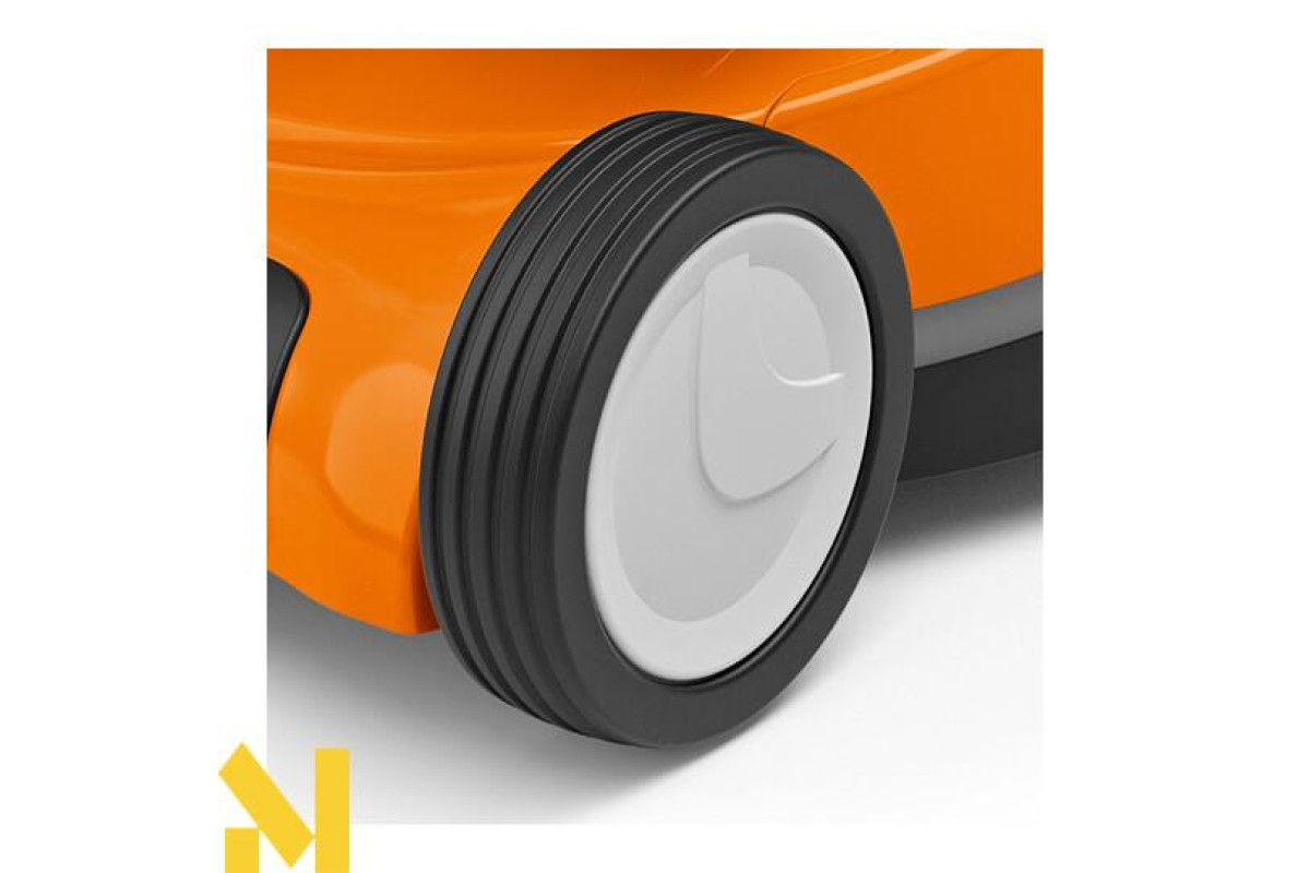 Легкі колеса газонокосарок STIHL міцні та довговічні. Щоб легко маневрувати при стрижці газону, вони оснащені профілем тяги.