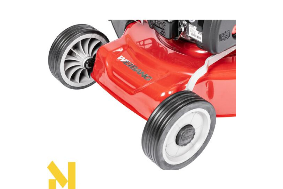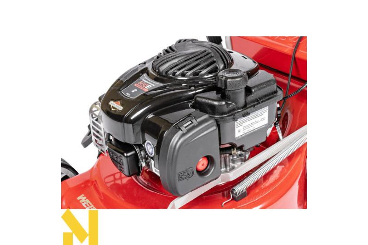 Бензинова косарка Weibang з двигуном Briggs and Stratton серії 500E потужністю 2,1 кВт - надзвичайно легка машина вагою всього 30 кг. Косарка не має приводу і оснащена колесами на підшипниках, боковим і заднім вивантаженням. Бензинова газонокосарка Weibang WB454HB 3 в 1 має компактний дизайн, ідеально підходить для малих і середніх газонів, і оснащена 4 функціями різання: збір, мульчування, бічний і задній викид. Вона оснащена двигуном B&S, який забезпечує достатню потужність для високоефективної роботи і гарантує тривалий термін служби. Робоча ширина косарки становить 45 см, що значно полегшує косіння у вузьких проходах і кутах саду.