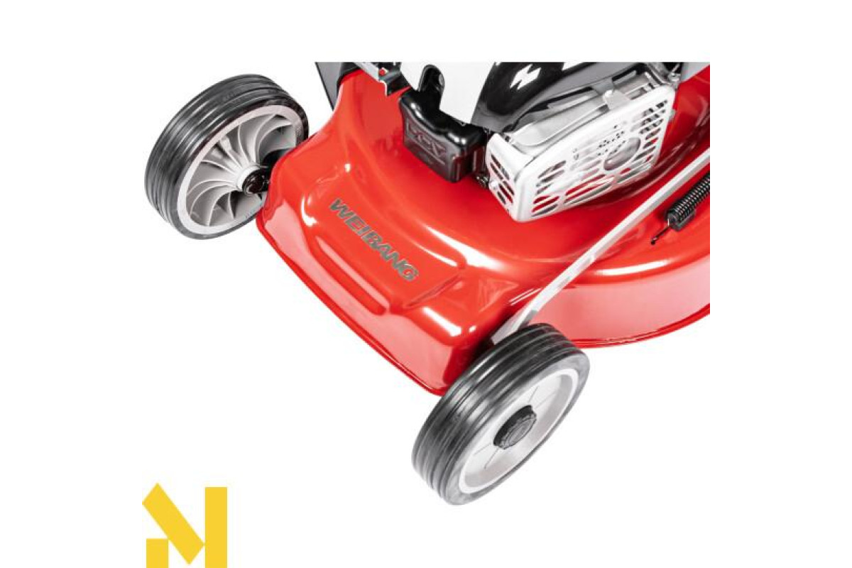 Газонокосарка Weibang WB506SB оснащена потужним двигуном Briggs & Stratton серії 750EX, який забезпечує достатню потужність для ефективної роботи. Косарка оснащена клиновим ременем і має функцію приводу. Висоту зрізу можна зручно регулювати від 20 мм до 70 мм за допомогою одного важеля. Корпус косарки покритий порошковою антикорозійною фарбою, що значно подовжує термін використання машини.
