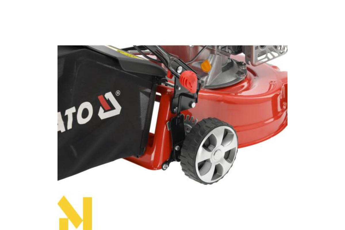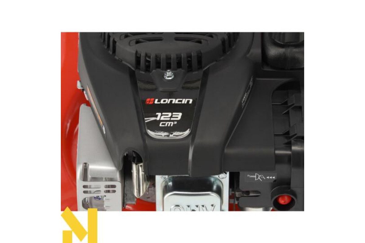 Бензинова газонокосарка оснащена двигуном LONCIN об'ємом 123 см3 , що забезпечує високу потужність і ефективність. Робоча ширина 41 см і стабільна конструкція полегшують стрижку газону на вузьких, нерівних і складних ділянках, наприклад, на схилах, уздовж доріжок і клумб або біля насаджень. Висота зрізу легко регулюється за допомогою важеля на 7 рівнях в діапазоні 25-75 мм.
