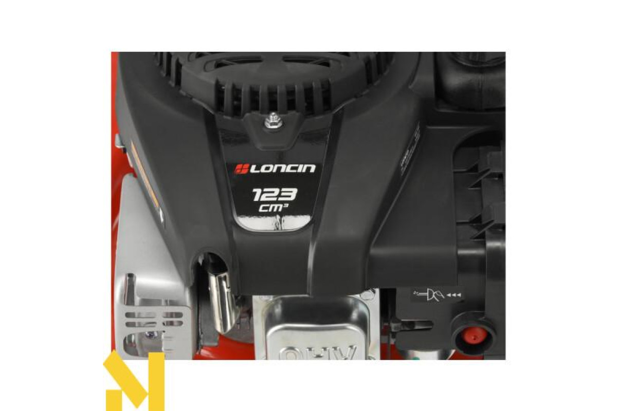 Бензинова газонокосарка, оснащена двигуном LONCIN об'ємом 123 см3 , який забезпечує високу потужність і ефективність. Робоча ширина 41 см і стабільна конструкція полегшують стрижку газону на вузьких, нерівних і складних ділянках, наприклад, на схилах, уздовж доріжок і клумб або біля насаджень. Вбудований привід полегшує роботу пристрою. Висота зрізу легко регулюється за допомогою важеля на 7 рівнях в діапазоні 25-75 мм.