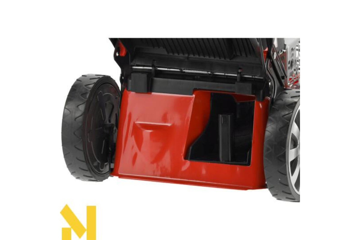 Міцна і стабільна конструкція, ергономічна рукоятка, покрита піною, і проста у використанні система регулювання висоти зрізу перетворять косіння трави в задоволення. Косарка має великі колеса і легко маневрує, що робить її ідеальною навіть у важкодоступних місцях.