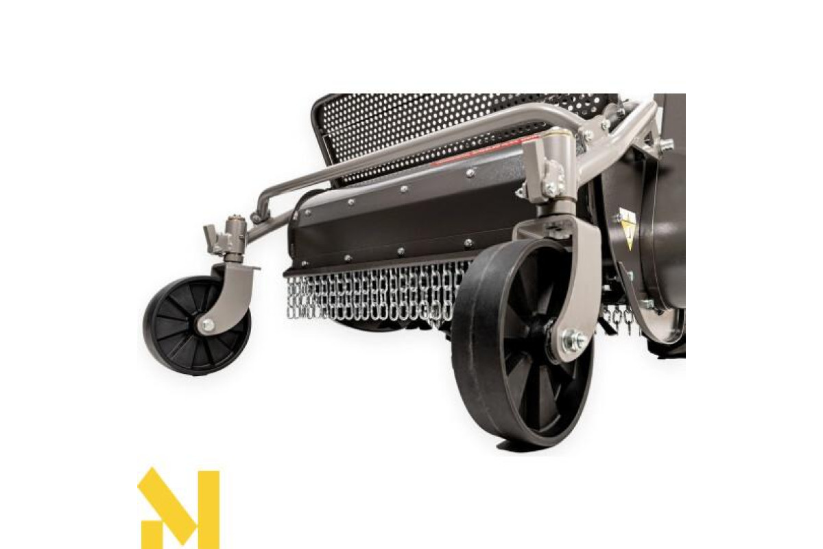 Широка ріжуча головка 680 мм оснащена Y-подібними сталевими лезами, що дозволяє швидко та ефективно видаляти бур'яни та траву на великих площах. Крім того, газонокосарка оснащена кермовим колесом, яке можна легко налаштувати відповідно до робочих умов – як вертикальне, так і горизонтальне регулювання. Це дозволяє користувачеві адаптувати інструмент до своїх потреб, забезпечуючи більший комфорт та ефективність роботи.