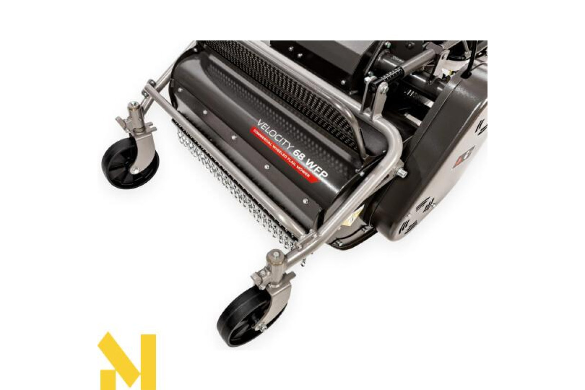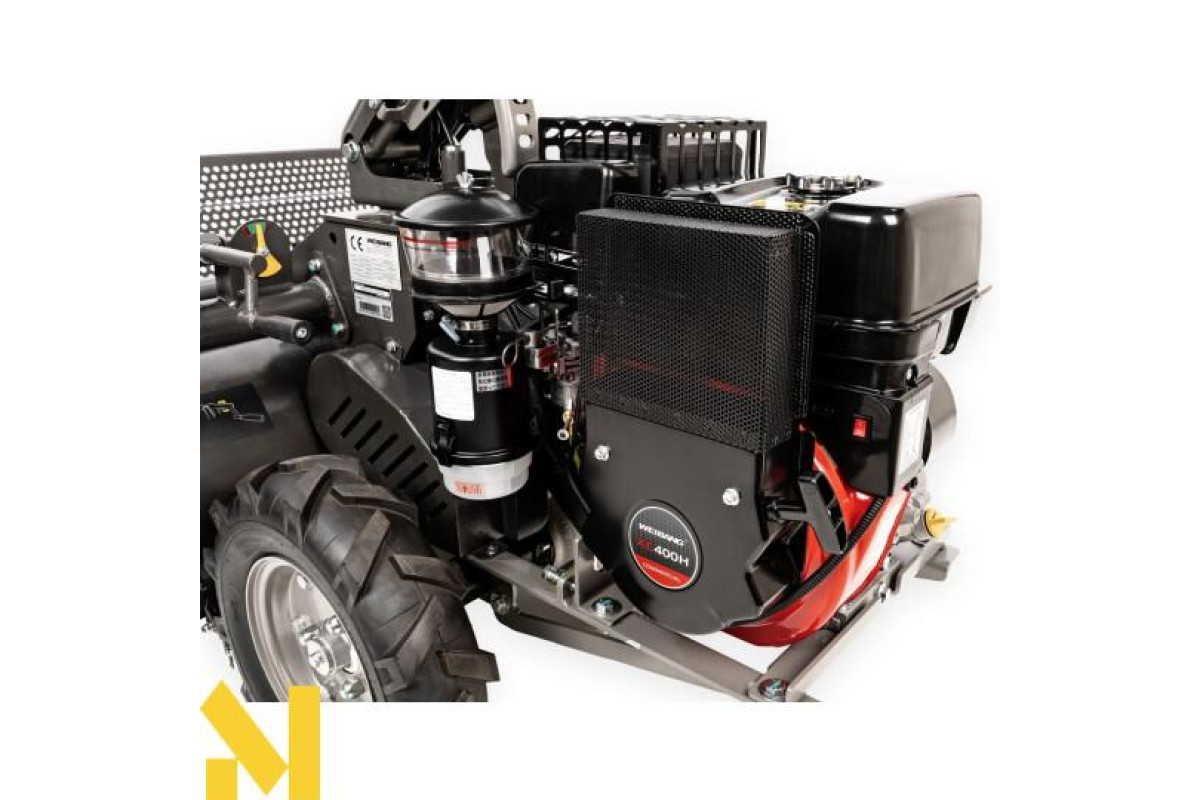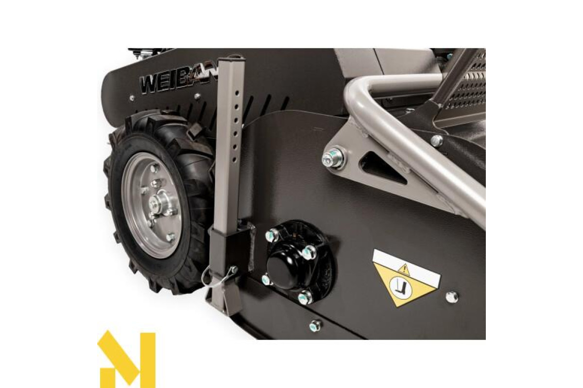 Легке пересування бездоріжжям сприяє не тільки колеса з шорстким протектором, але й варіаторна трансмісія Weibang. Передні колеса, встановлені на штифтах, забезпечують газонокосарці чудову маневреність.