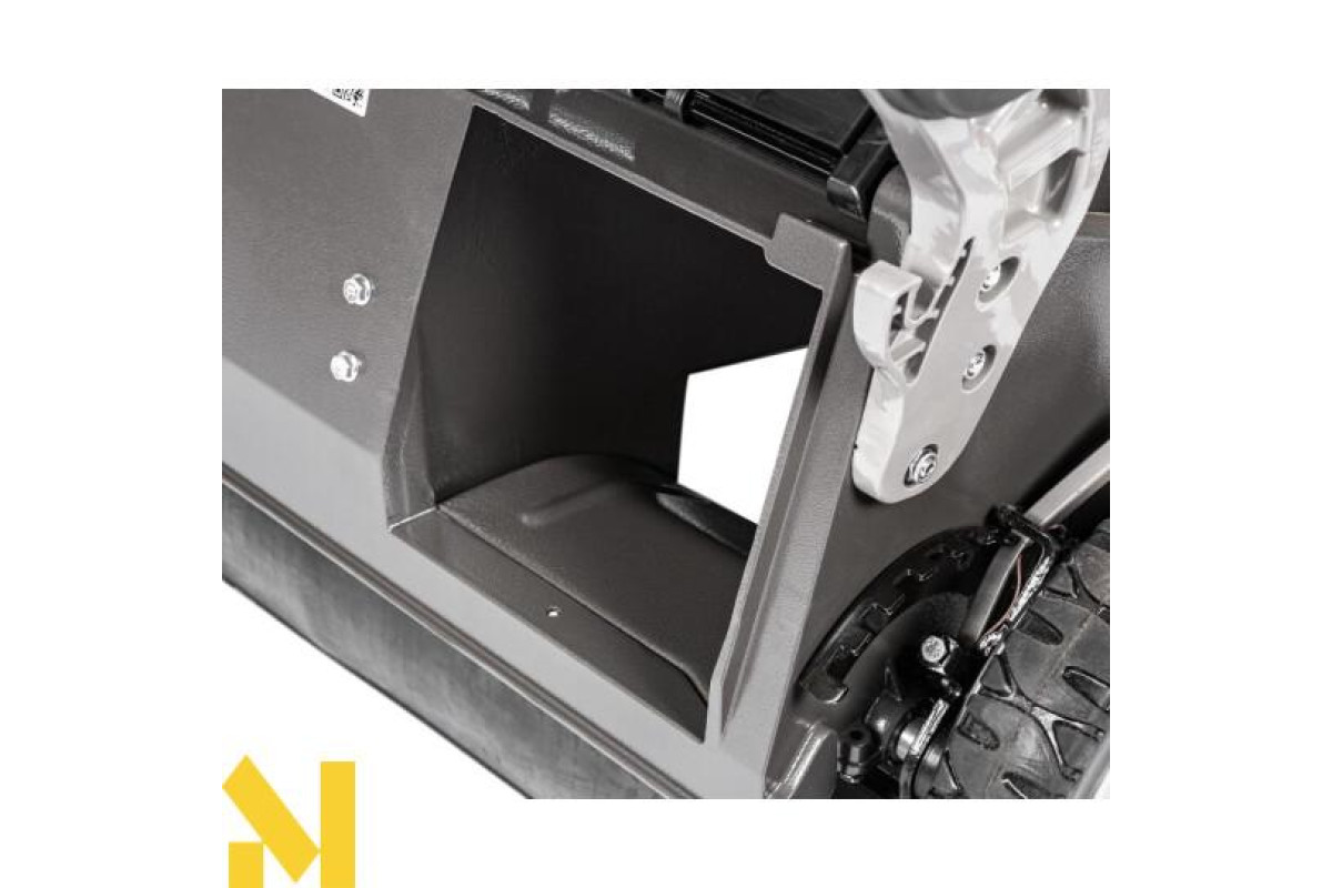 Ще одна перевага косарки перед конкурентами - сталевий корпус. Надзвичайно товстий лист з кованої сталі, покритий лаком з підвищеною стійкістю до механічних пошкоджень. Краї кузова вигнуті назовні, завдяки чому там не збирається трава і сміття, а шасі легко чистити.
