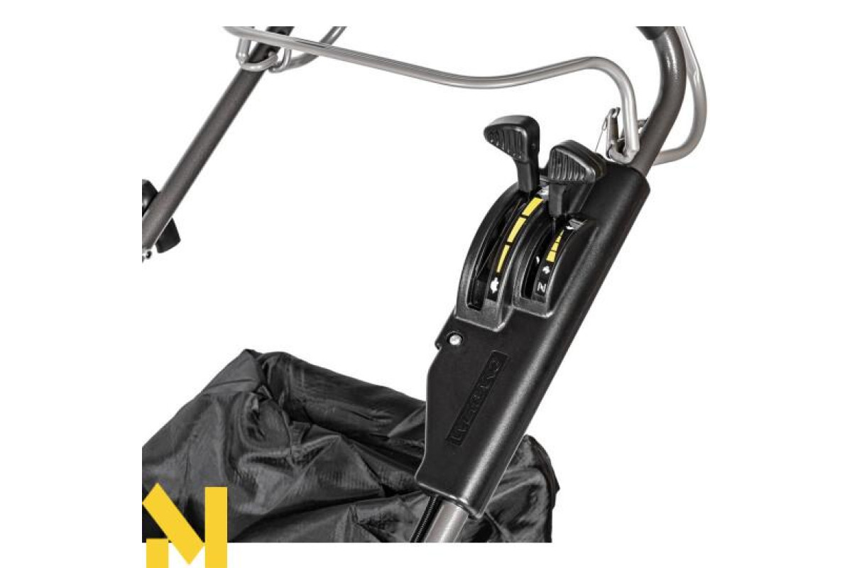 Зручність використання піднімається рукояткою з добре розташованими механізмами управління. Його можна скласти, розібрати кошик за один хід і зберігати в положенні стоячи.