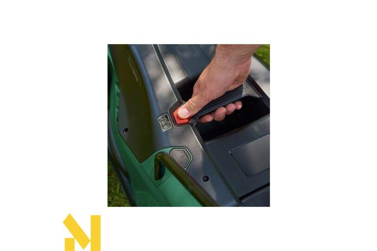 Регулювання висоти AdvancedRotak здійснюється однією простою кнопкою, що дозволяє вибирати один з семи рівнів різання в діапазоні від 25 до 80 мм, тому можна приступати до косіння відразу.
