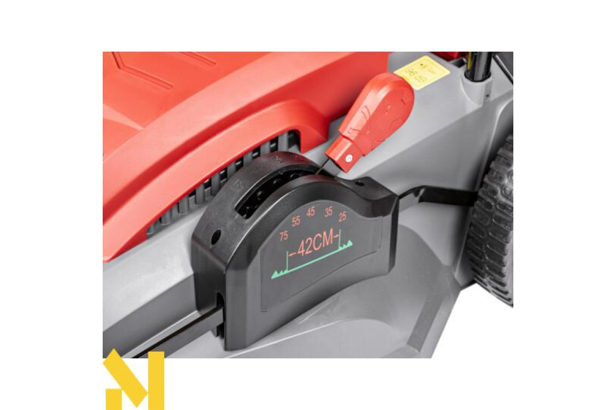 Газонокосарка електрична Cedrus KE42 є потужною та надійною, завдяки своєму індуктивному двигуну з потужністю 1800 Вт. Регулювання висоти зрізу центральне та має 5 рівнів, що дозволяє вам налаштувати висоту зрізу залежно від ваших потреб. Робоча ширина складає 420 мм, що дозволяє швидко та легко косити газони.