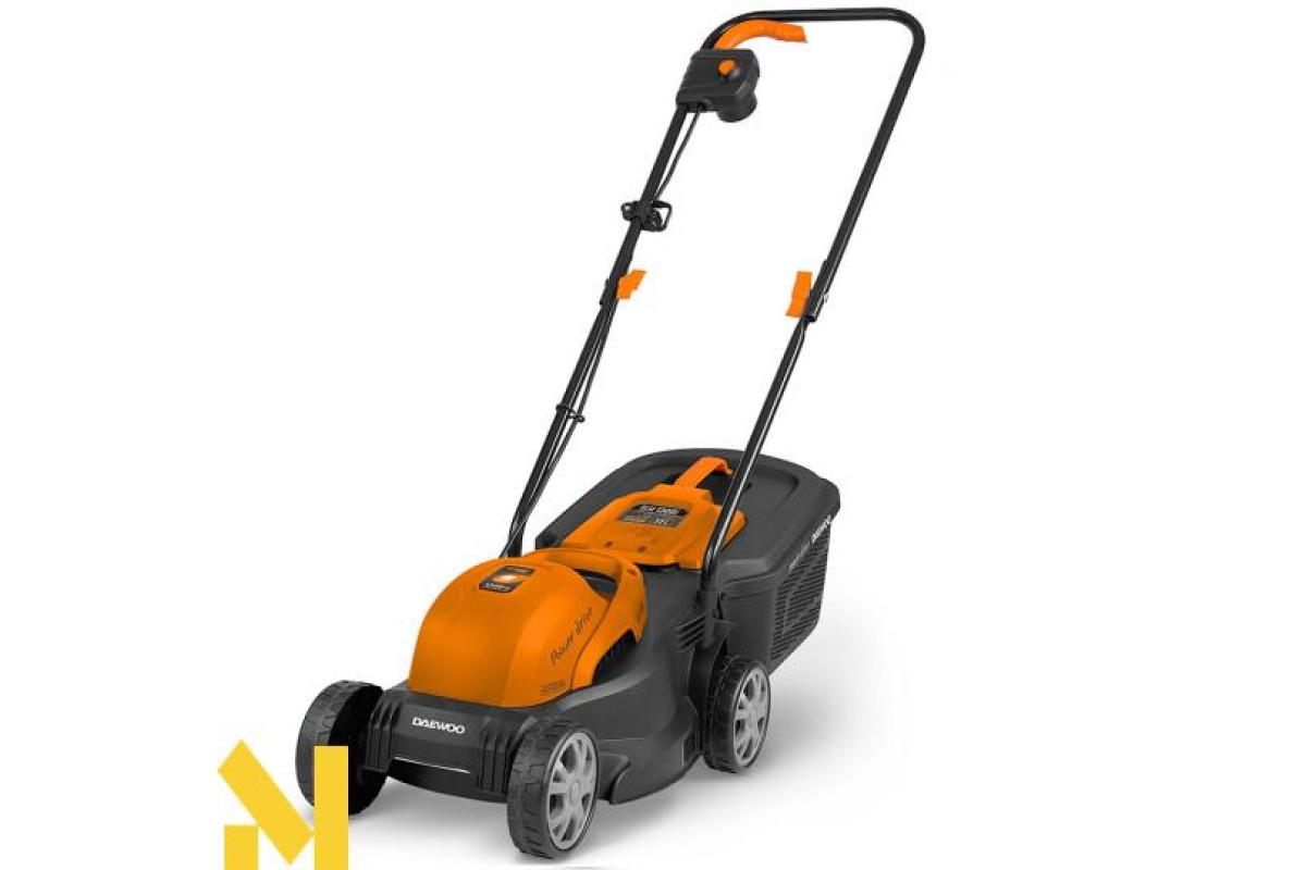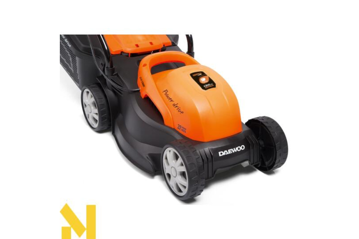 Електрична газонокосарка Daewoo DLM 1300E — високотехнологічний пристрій зі зручною продуманою конструкцією та чудовим сучасним дизайном. Оснащена надійним електричним двигуном потужністю 1300 Вт, спеціально розробленим інженерами Daewoo для газонокосарок. Клиноремінна передача забезпечує надійний захист двигуна від перевантажень у разі зіткнення ножа косарки із перешкодами.
