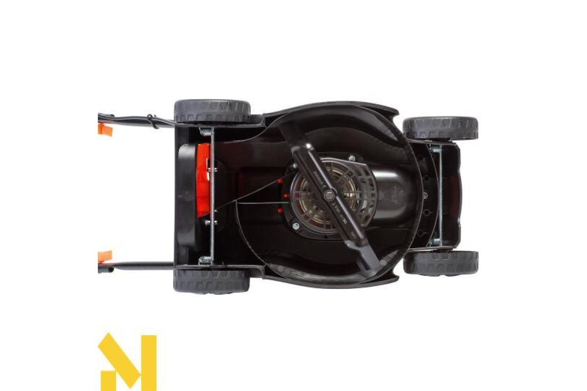 Корпус газонокосарки виготовлений з технологічного пластику. Це робить його стійким до випадкових ударів, атмосферного впливу та у разі зіткнення з перешкодами.