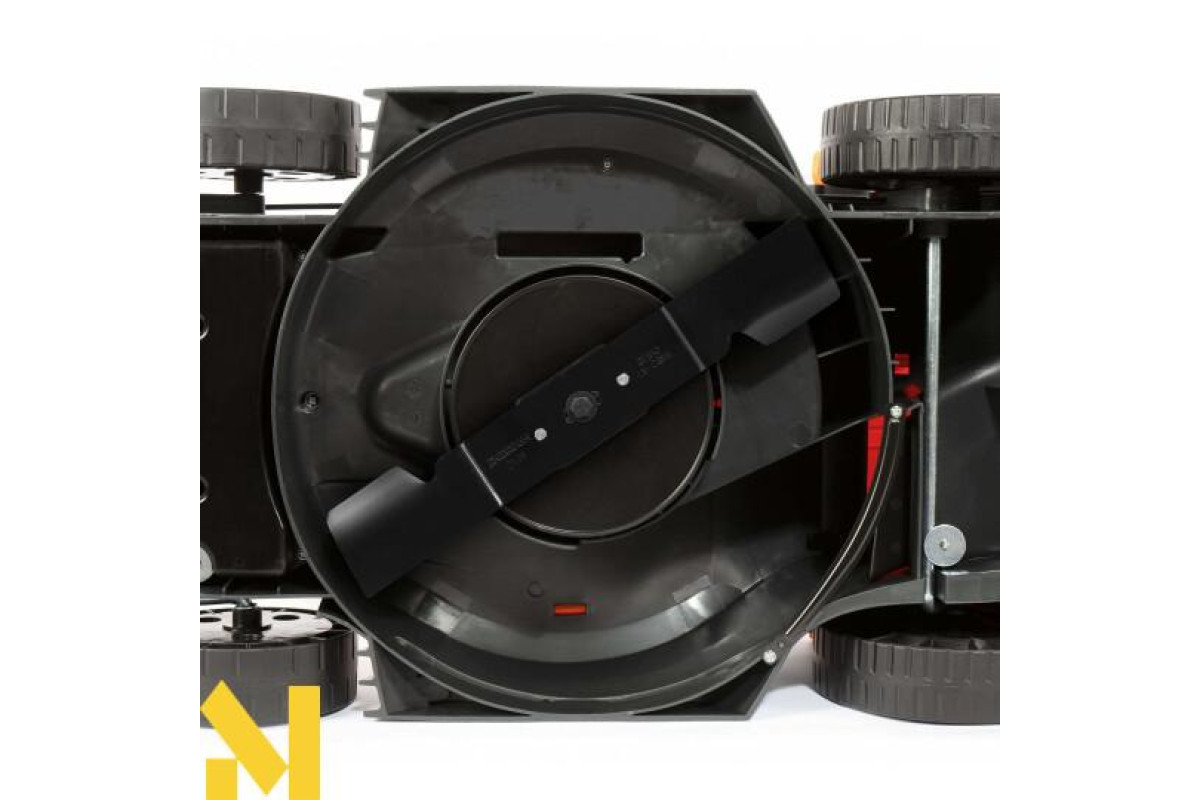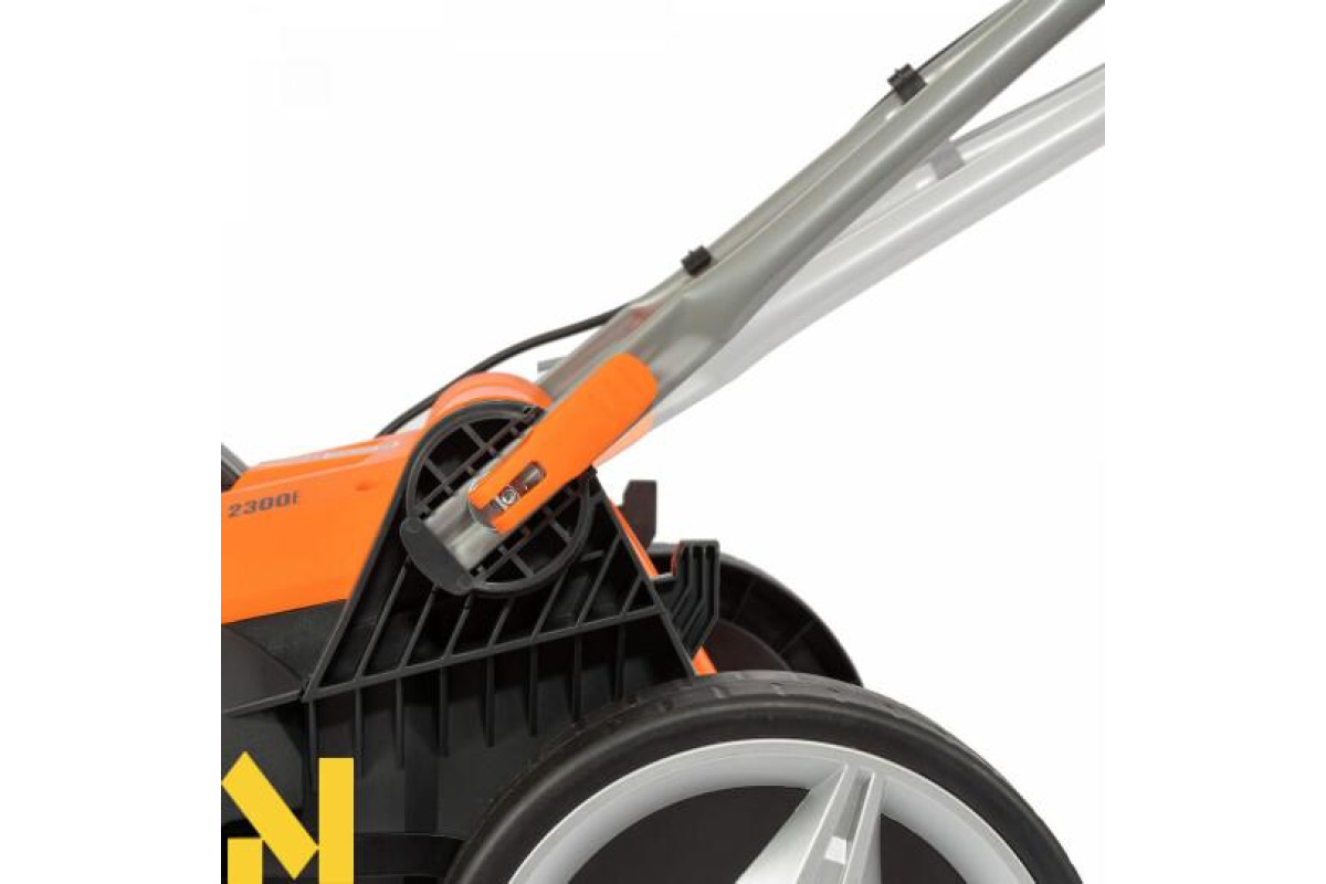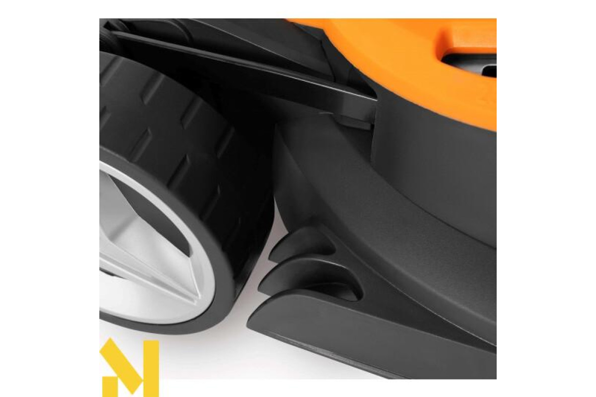 Збільшений розмір задніх коліс дозволяє легко пересувати косарку, у тому числі на нерівних поверхнях.