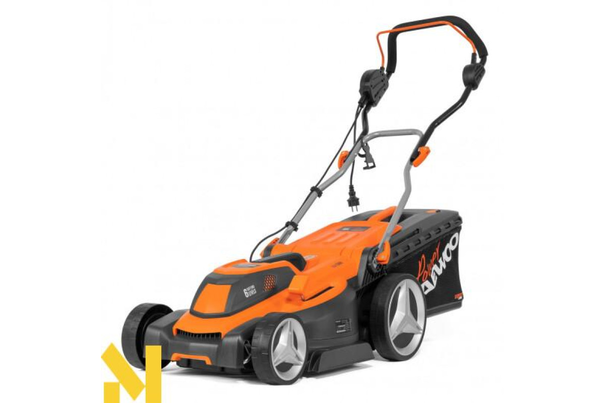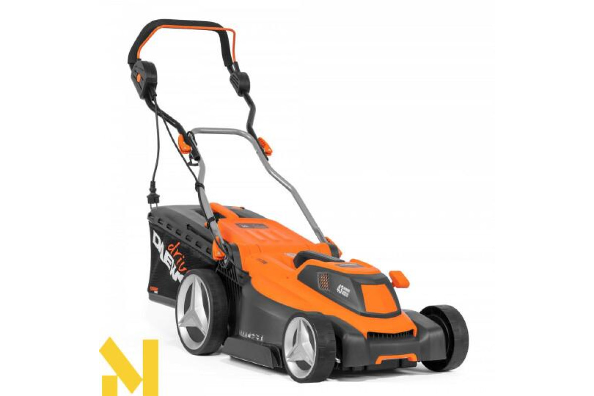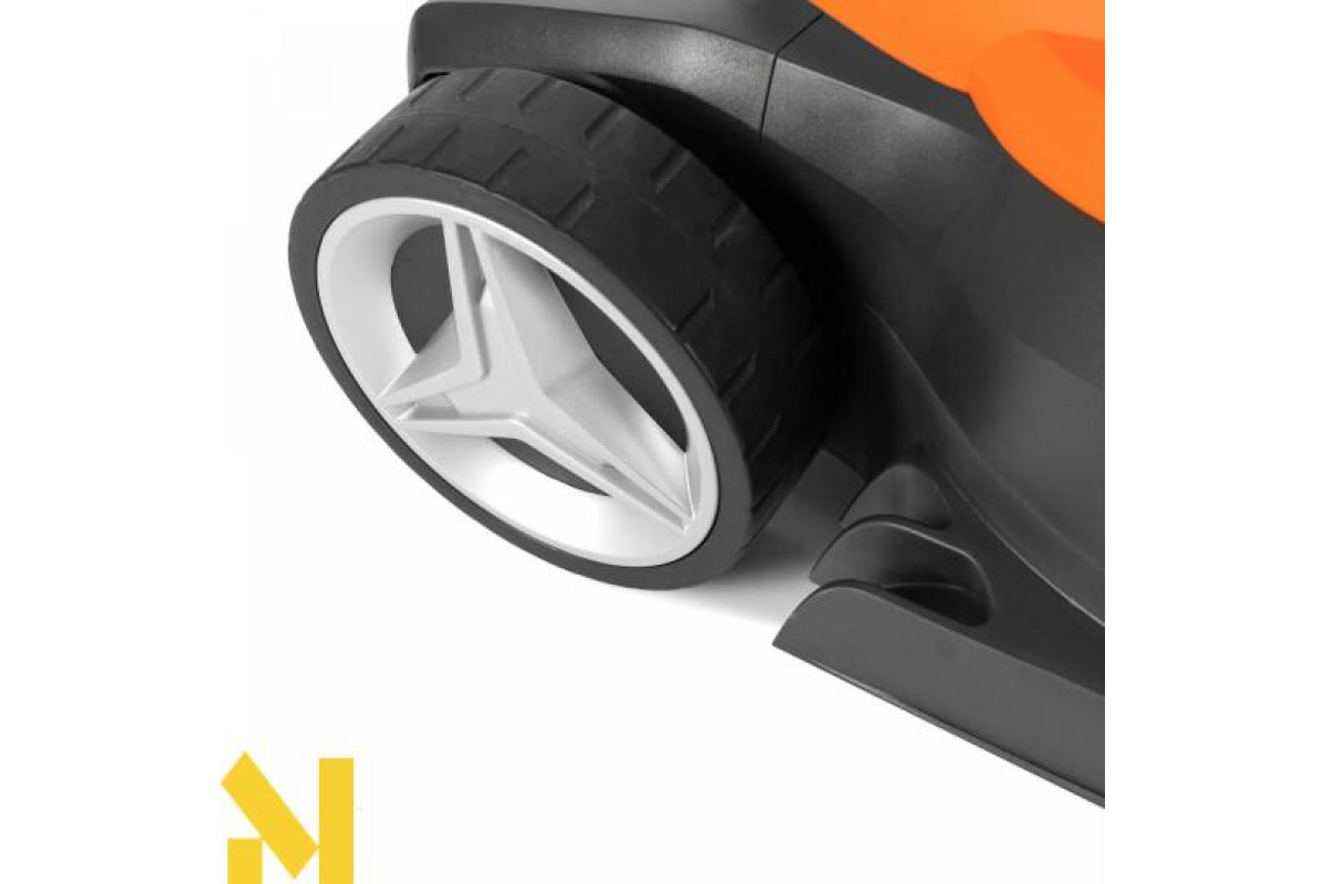 Збільшений розмір задніх коліс дозволяє легко пересувати косарку, у тому числі на нерівних поверхнях.