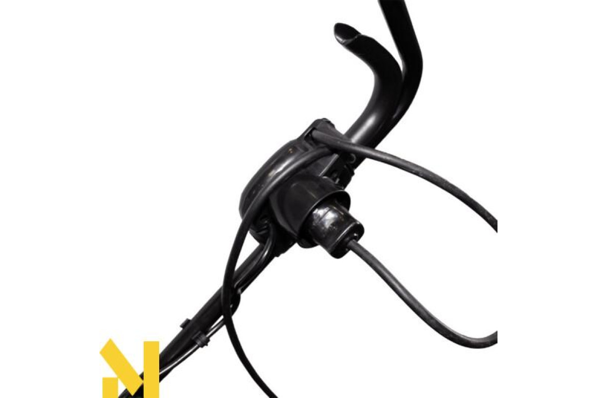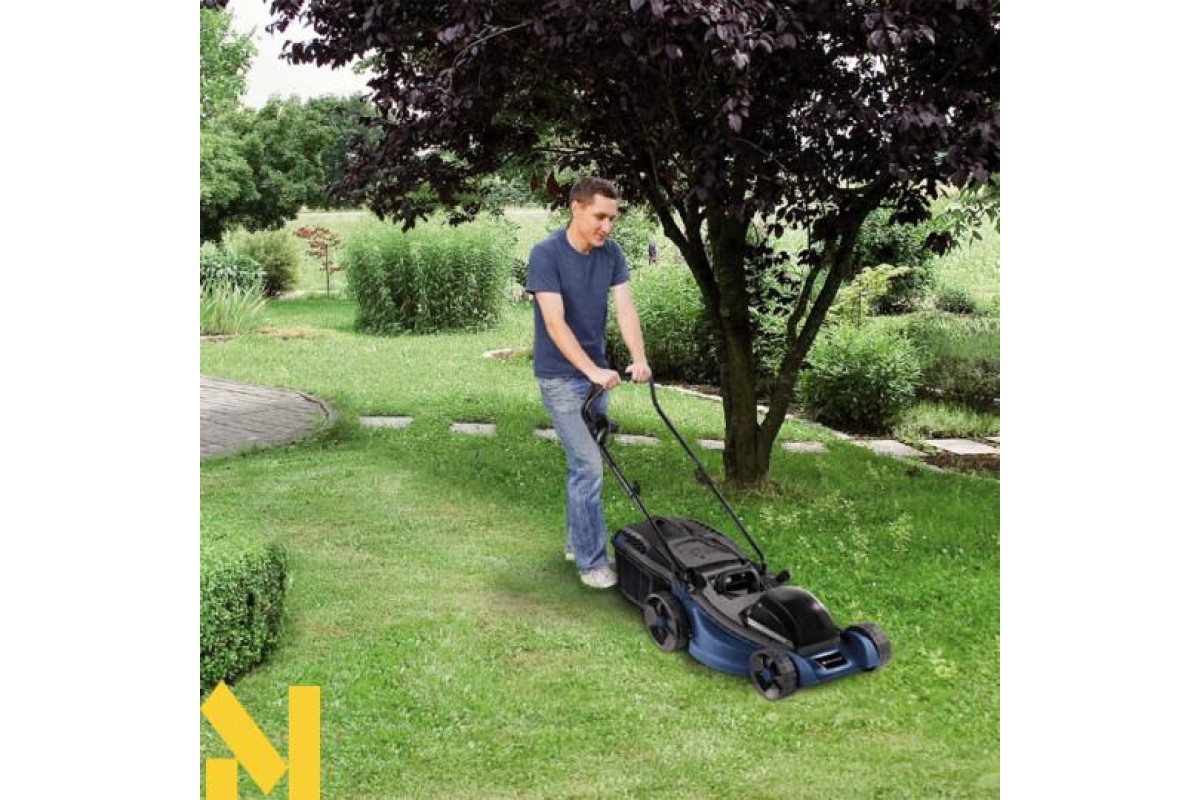 Використовуваний запобіжний 2-точковий вимикач гарантує максимальну безпеку для користувача, запобігаючи небажаному запуску двигуна. Крім того, кабельний затискач для кріплення кабелю дозволяє зняти натяжіння з нього та захищає кабель живлення від зносу і пошкоджень. Газонокосарка оснащена ручкою для зручного перенесення та транспортування і має ергономічну рукоятку, що може складатися для економії місця зберігання.