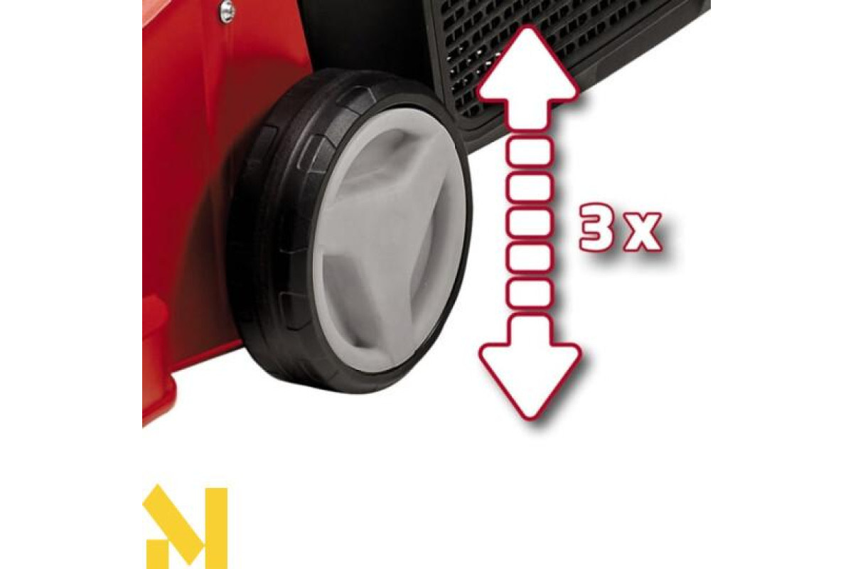 Завдяки 3-ступінчастому осьовому регулюванню висоти зрізу висоту зрізу електричної газонокосарки можна регулювати індивідуально.