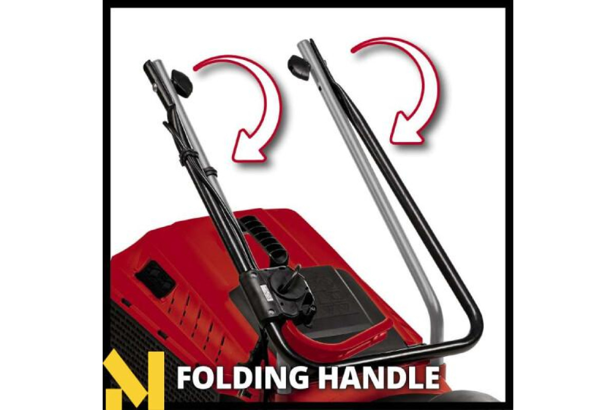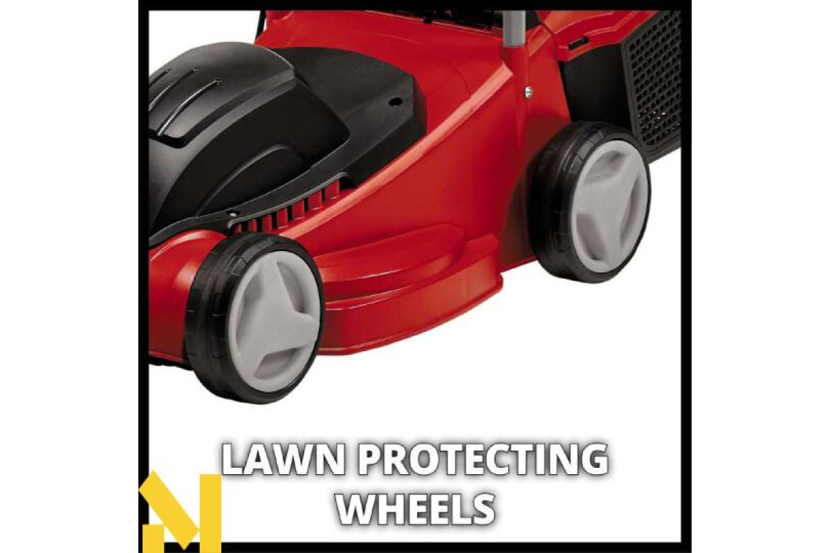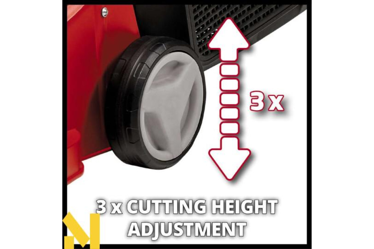 Нова газонокосарка Einhell GC-EM 1032 високоякісний, надійний і дуже потужний інструмент для амбіційних садівників-любителів, який піклується про газони середнього розміру забезпечуючи чистий рівний зріз і ідеальне скошування навіть високої трави завдяки точному регулюванню ножів і високих обертів двигуна. Оптимальна конструкція газонокосарки Einhell GC-EM 1032 гарантує відмінну роботу і в важкодоступних місцях - в кущах і під деревами. Для кожного колеса є окреме трирівневе регулювання висоти скошування (20 - 60 мм), великі широкі колеса газонокосарки надають менше навантаження на газон, кожен раз гарантують ідеальні результати скошування трави. Травозбірник на 30 л оснащений індикатором заповнення. Газонокосарка Einhell GC-EM 1032 оснащена складаною довгою ручкою, яка дозволяє зберігати в складеному вигляді газонокосарку в мінімальному просторі.