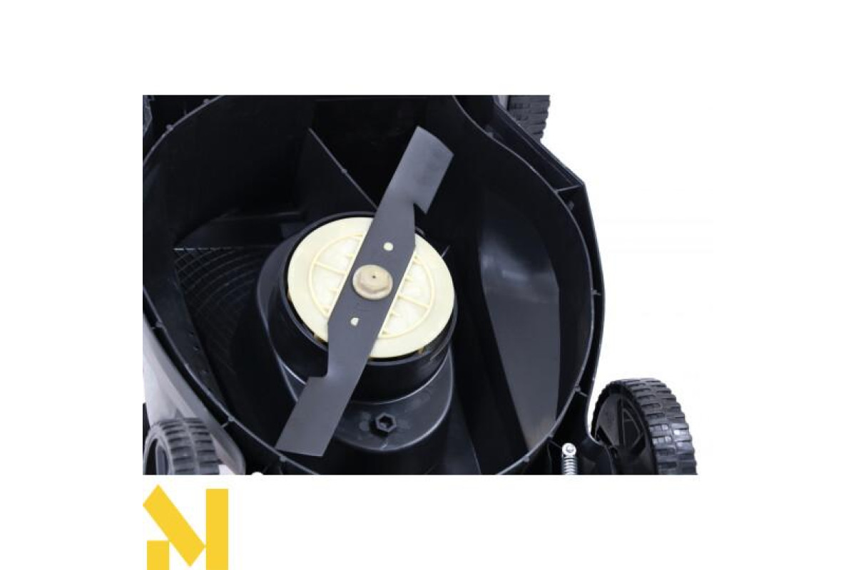 Асинхронний електродвигун, через який подається представлена косарка, має потужність 1400 Вт, а напруга джерела живлення становить 230 В / 50 Гц. Пам'ятайте, однак, що косарка вимагає місця, де немає проблем з доступом до електричної розетки. Корпус газонокосарки виготовлений з надзвичайно ударостійкого і амортизуючого пластика. Пристрій простий у використанні, а завдяки невеликій вазі (10,5 кг) маневрування пристрою стає ще більш точним. Ширина косіння становить 34 см, що означає, що газонокосарка може легко досягти навіть самих вузьких місць в нашому саду. Зручна ручка і міцні колеса дозволяють легко направляти пристрій на траву.