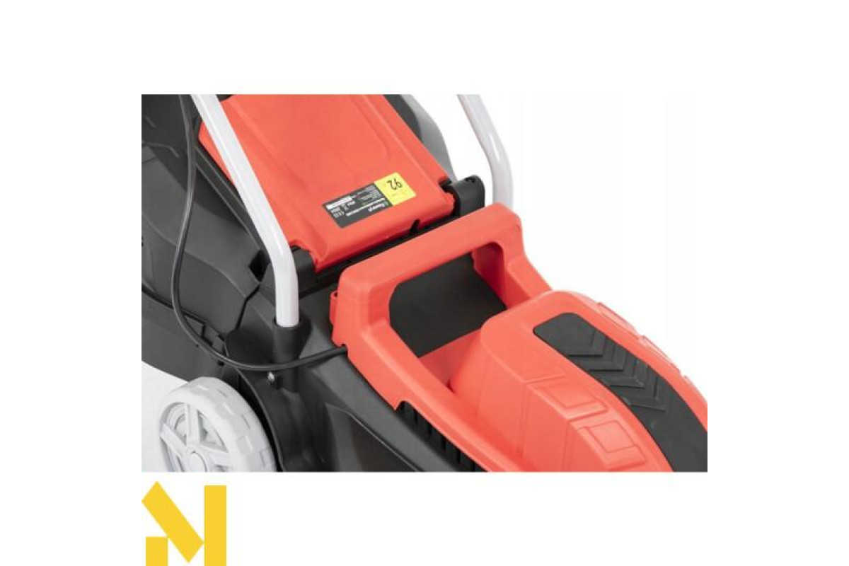 Косарка оснащена ручкою, яка дозволяє легко переносити її з одного місця на інше. Кошик об'ємом 30 літрів виготовлений з міцного пластику і оснащений ручкою для зручного перенесення і спорожнення, що робить використання косарки комфортним і безпроблемним.