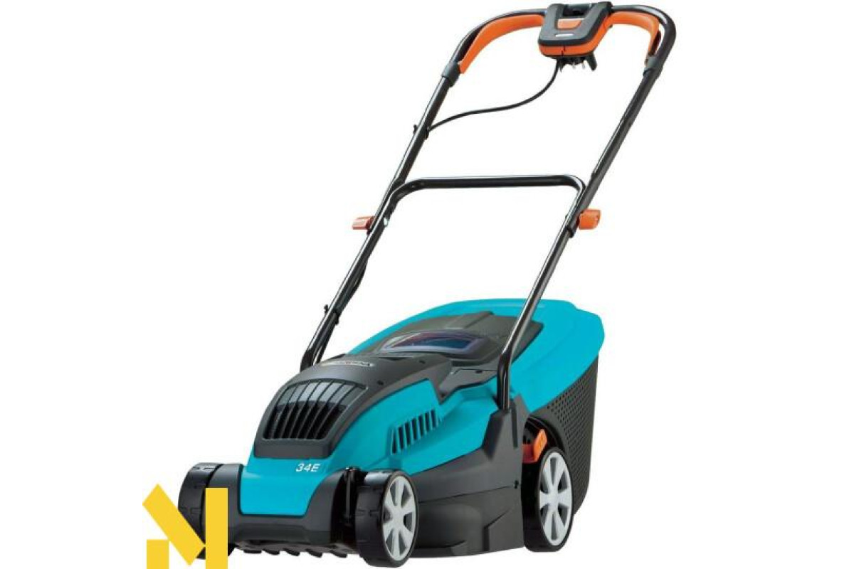Садова техніка оснащена двигуном потужністю 1400 Вт і пристойним крутним моментом. Він приводить в дію загартовані ножі, які охоплюють у ширину до 34 см газону. Уся зрізана трава потрапляє у контейнер ємністю 40 л. Або скошена рослинність може викидатися назад на газон. Крім цього апарат обладнаний колесами з підшипниками ковзання, які мають хорошу прохідність.