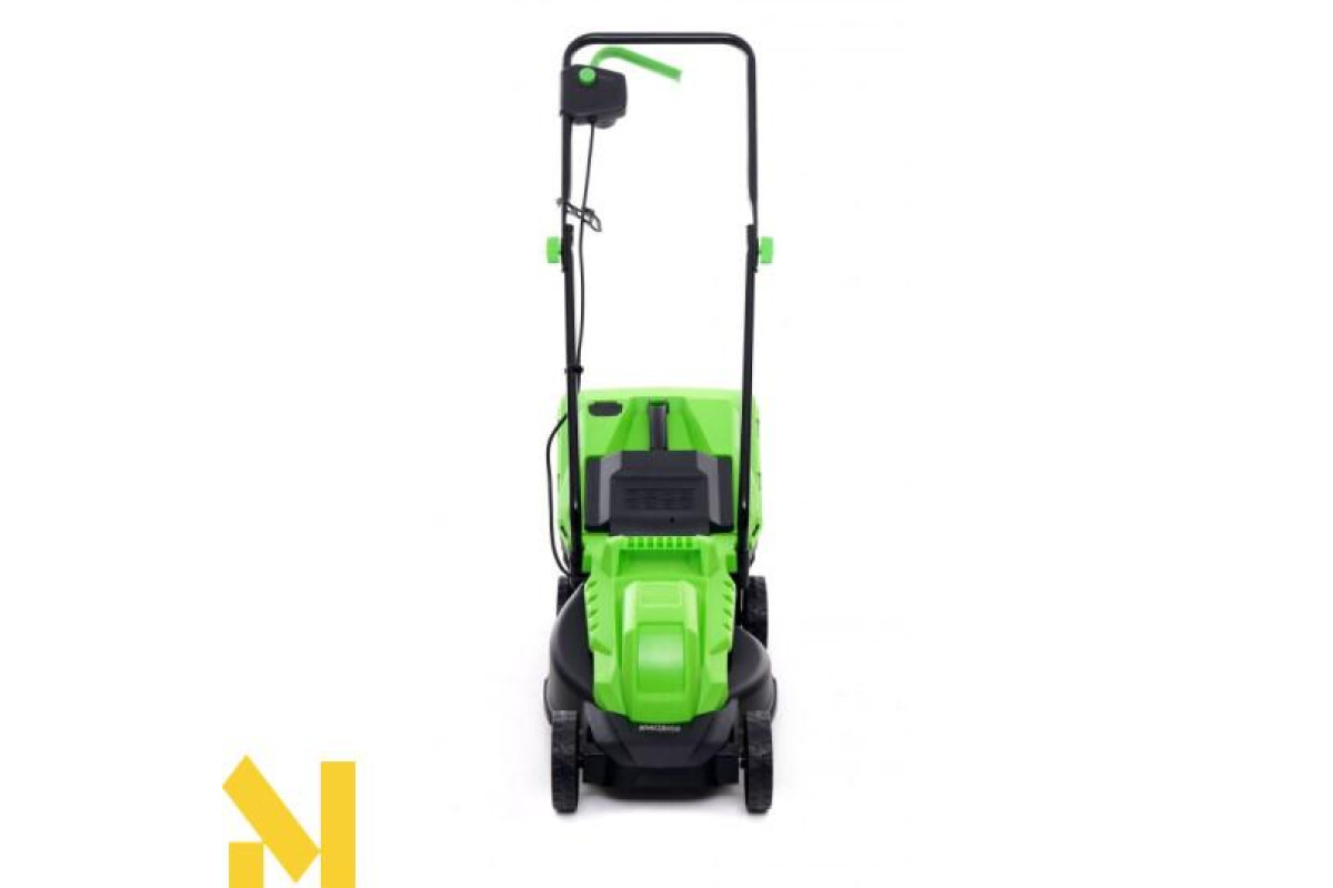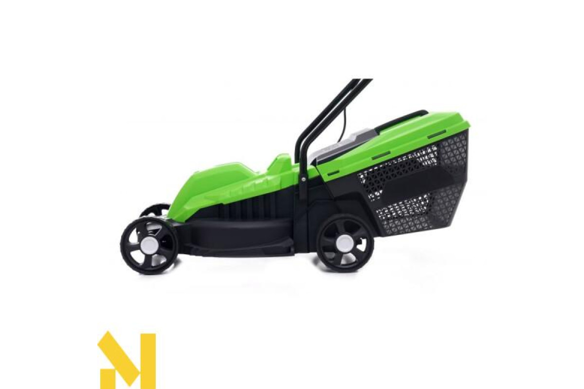 Пристрій оснащений містким 30-літровим кошиком для скошеної трави. Конструкція кошика ретельно продумана, виготовлена із пластику, з ручкою для перенесення.
