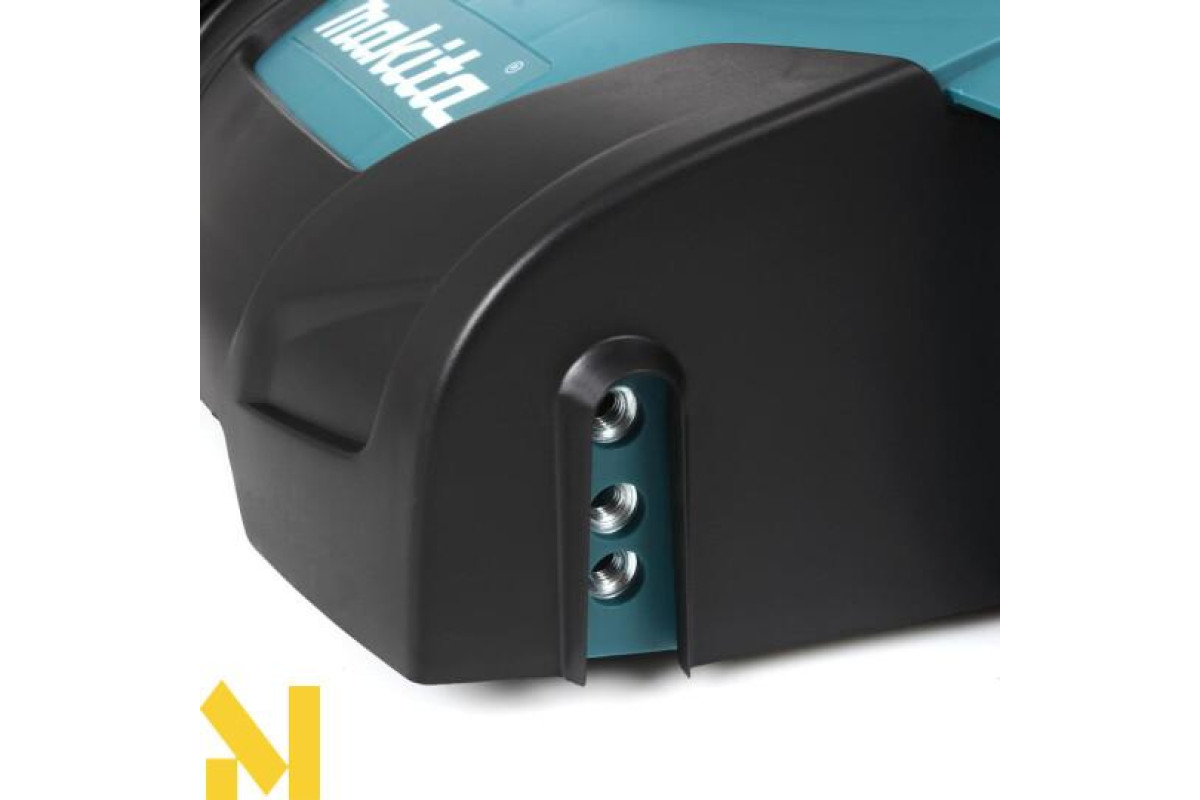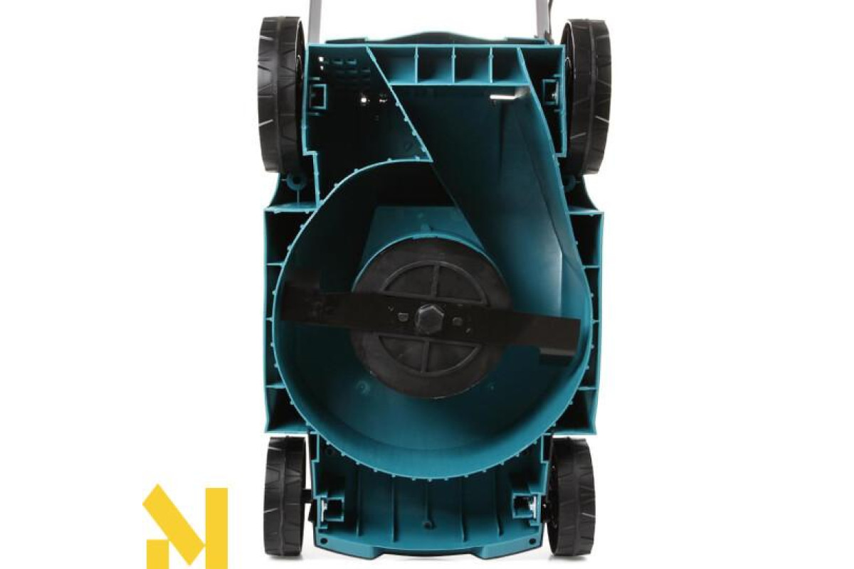 Ця садова техніка обладнана корпусом, що виготовлений з міцного поліпропілену. Агрегат оснащений травозбірником для сміття на 27 літрів. До того ж контейнер для відходів має індикатор наповнення. Варто зазначити, що колеса газонокосарки збільшені для поліпшення прохідності газоном. А ще вони мають свою особливість, оскільки зміщені всередину конструкції, що дає можливість косити траву біля стін та парканів.