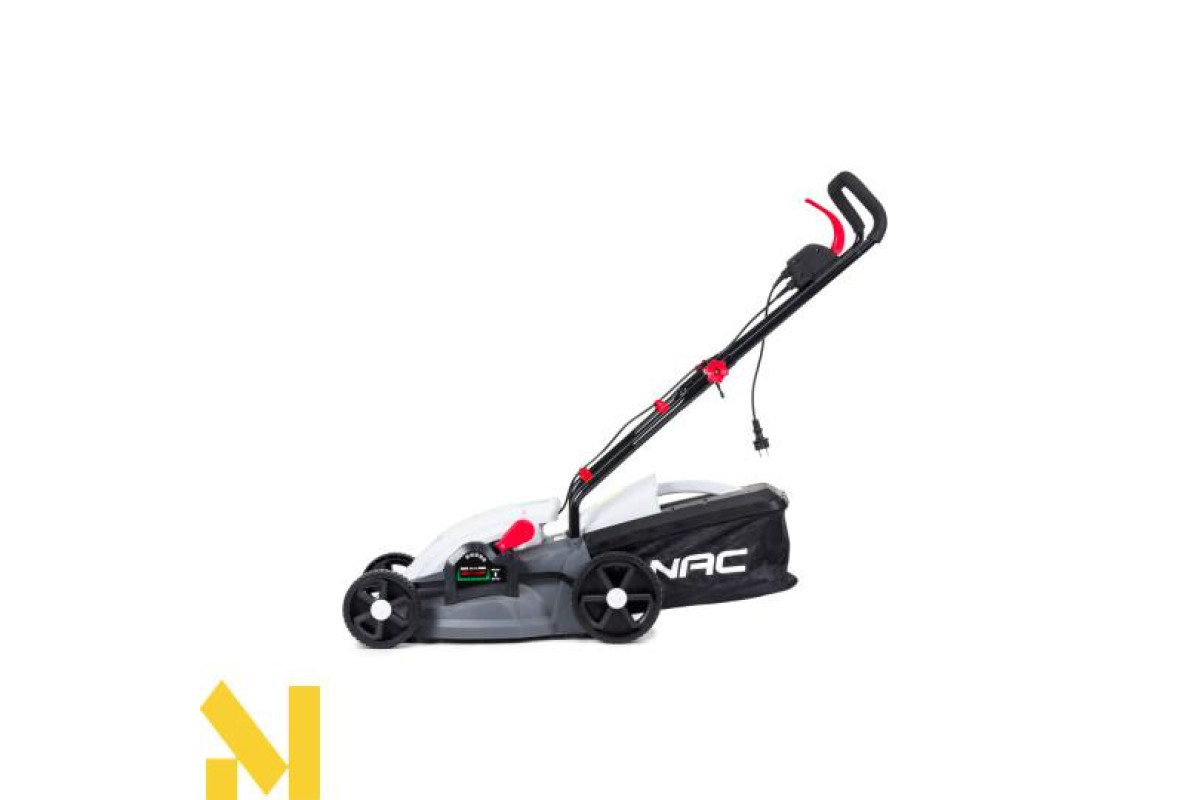 Електрична газонокосарка NAC LE14-34-PI-G з шириною косіння 34 см оснащена асинхронним двигуном потужністю 1400 Вт, що вирізняється високою довговічністю і безшумною роботою.
