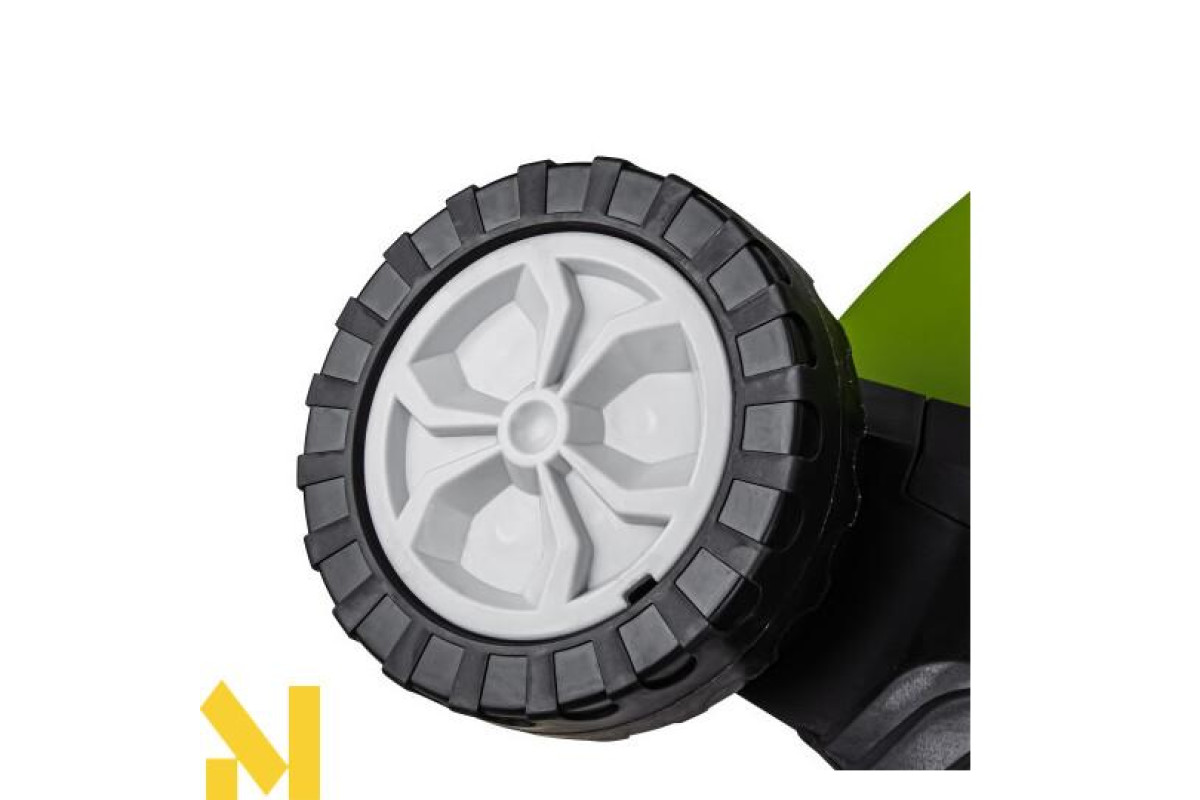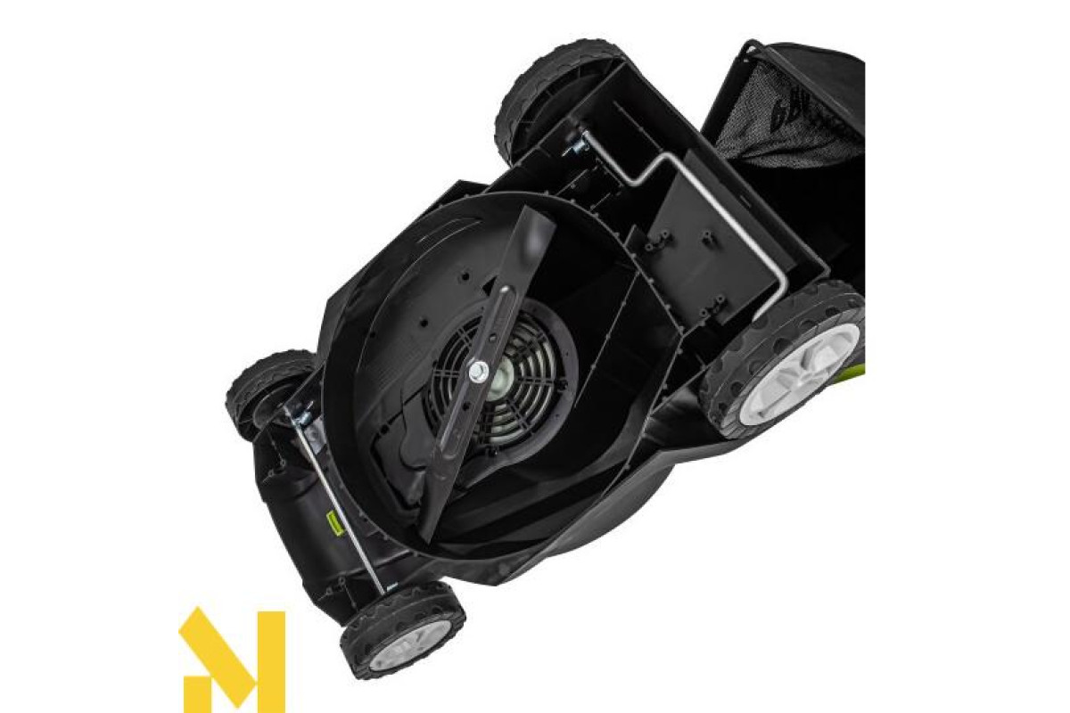 Модель відрізняється високою продуктивністю, що забезпечує швидкість, якість і зручність обробки домашнього газону. Це досягається за рахунок електродвигуна потужністю 1,8 кВт і широкого скосу 360 мм.