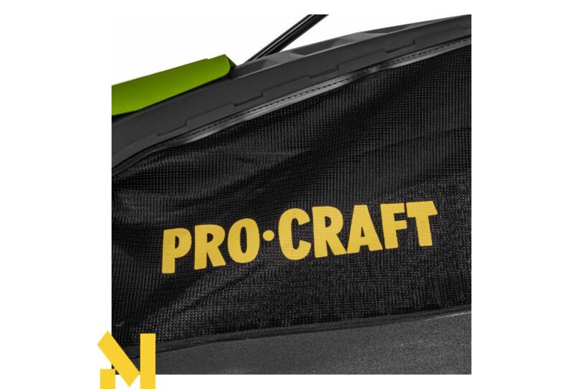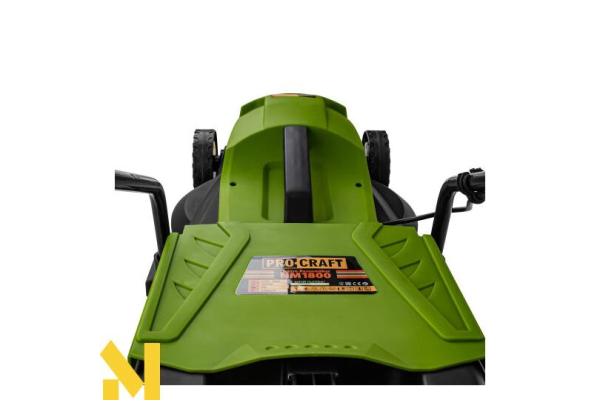 ProCraft NM-1800 має складну ручку, за допомогою особливого індикатора можна відстежувати заповнення травозбірника, щоб вчасно провести обслуговування. Модель дозволяє регулювати висоту скошування, а від випадкового пуску захистить спеціальна система.