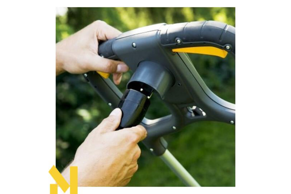 Розсувна рукоятка з швидкозажиними фіксаторами сприяє підвищенню зручності роботи оператора. З її допомогою він легко може управляти пристроєм із запущеним двигуном. На ручці знаходяться основні важелі управління агрегатом, які спрощують технічне обслуговування.