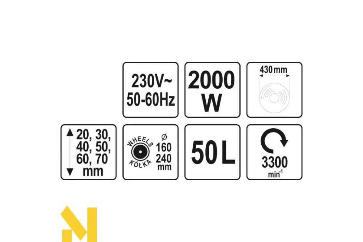 Електрична косарка потужністю 2000 Вт від YATO. Обладнана міцним кошиком для стиснення зрізаної трави без частої потреби її спорожнення. Вона дуже проста в експлуатації і не вимагає ніякої складної підготовки до роботи. Легка вага забезпечує комфорт роботи і зручне транспортування. Компактні розміри спрощують зберігання інструменту. Зрізана трава збирається в пластиковий 50-літровий кошик для трави, який легко знімається.