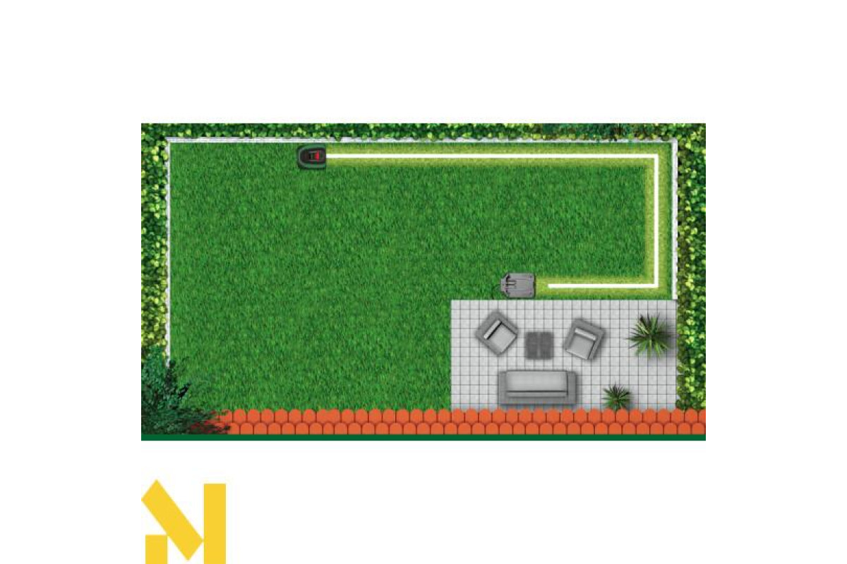 Indego починає наступну сесію повної стрижки газону з обрізки по краю, забезпечуючи акуратну стрижку до краю виділеної області.