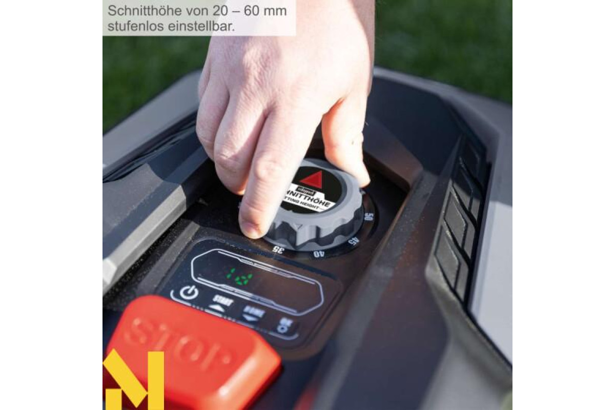 Компактна роботизована газонокосарка із шириною стрижки 18 см стриже газон незалежно та в довільному порядку. Висота стрижки може бути встановлена індивідуально в 5 ступенів від 20 до 60 мм. Робот також безпечно підстригає краї газону на рівні газону, тому їх не потрібно додатково підрізати.