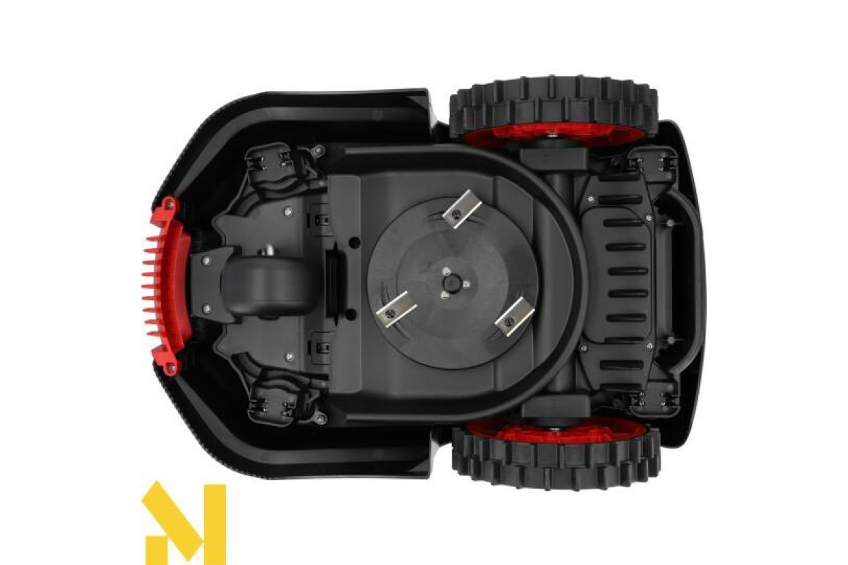 Система плаваючої підвіски ножів підлаштовує висоту косіння до нерівностей поверхні, а живлення від літій-іонного акумулятора забезпечує тиху роботу без викидів. Управління через Wi-Fi та Bluetooth з мобільного додатку дозволяє налаштовувати графік, обслуговувати кілька зон та оновлювати програмне забезпечення FOTA. Після завершення циклу або виявлення опадів пристрій автоматично повертається до док-станції.