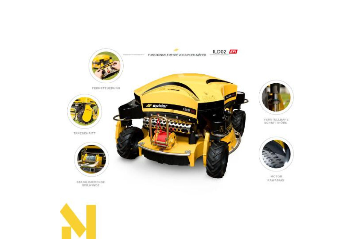 Косарка SPIDER ILD02 EFI — єдина косарка на ринку, яка сертифікована для косіння схилів з нахилом 60°.