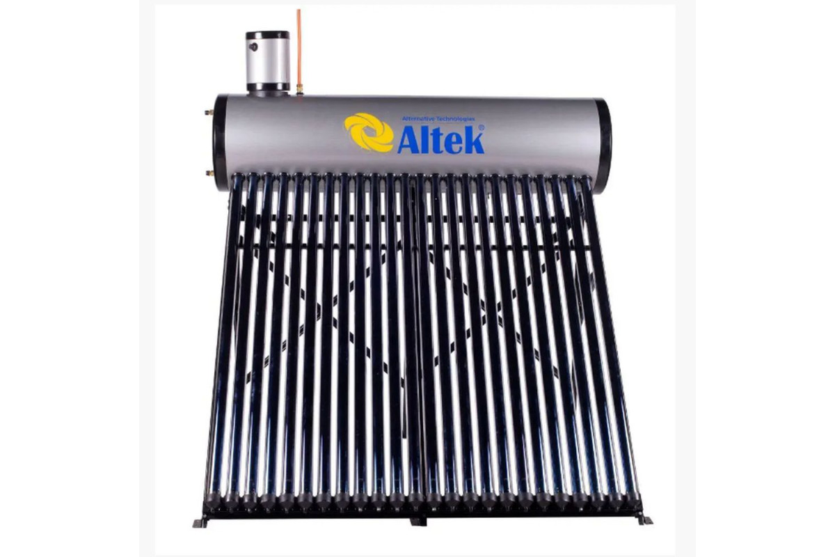 проходячи через вбудований спіральний теплообмінник, розташований усередині бака накопичувача. Вода, від якої відводиться тепло, знаходитися безпосередньо в баку накопичувача і при необхідності може відводитися споживачеві пасивно, тобто. за рахунок гравітаційних сил. Тиск «пасивної» води залежить від перепаду висот між сонячним водонагрівачем і точкою водорозбору, а тиск води на виході з теплообмінника залежить від тиску води на вході в нього з Вашої системи холодного водопостачання. Вакуумні трубки виготовлені з високоякісного, надміцного боросилікатного. скла, що забезпечує їх захист від граду та механічних пошкоджень. Конструкція вакуумної трубки виконана на кшталт скляної колби термоса. Така конструкція сприяє мінімізації тепловтрат і високої термостійкості. Поглинання сонячного випромінювання відбувається завдяки високоефективній поглинаючій здатності спеціального багатошарового покриття, нанесеного на внутрішню поверхню трубки. Встановлюються вакуумні трубки в нижню частину бака для води. Коли вода в трубках нагрівається, щільність її зменшується і тепла вода піднімається у верхню частину бака, а холодна вода з бака опускається вниз у вакуумну трубку. Так забезпечується циркуляція та теплообмін води в баку. Зовнішній шар сонячного водонагрівача виготовлений з високоякісної низьковуглецевої сталі із вмістом титану. Це забезпечує високу корозійну стійкість та тривалий термін експлуатації. Між зовнішнім та внутрішнім шарами бака знаходиться сучасний екологічно чистий матеріал – пінополіуретан, що володіє найкращими характеристиками теплозбереження. Після встановлення та налагодження, геліосистема буде працювати, забезпечуючи споживача гарячою водою, що задовольняє побутові вимоги до гарячого водопостачання.