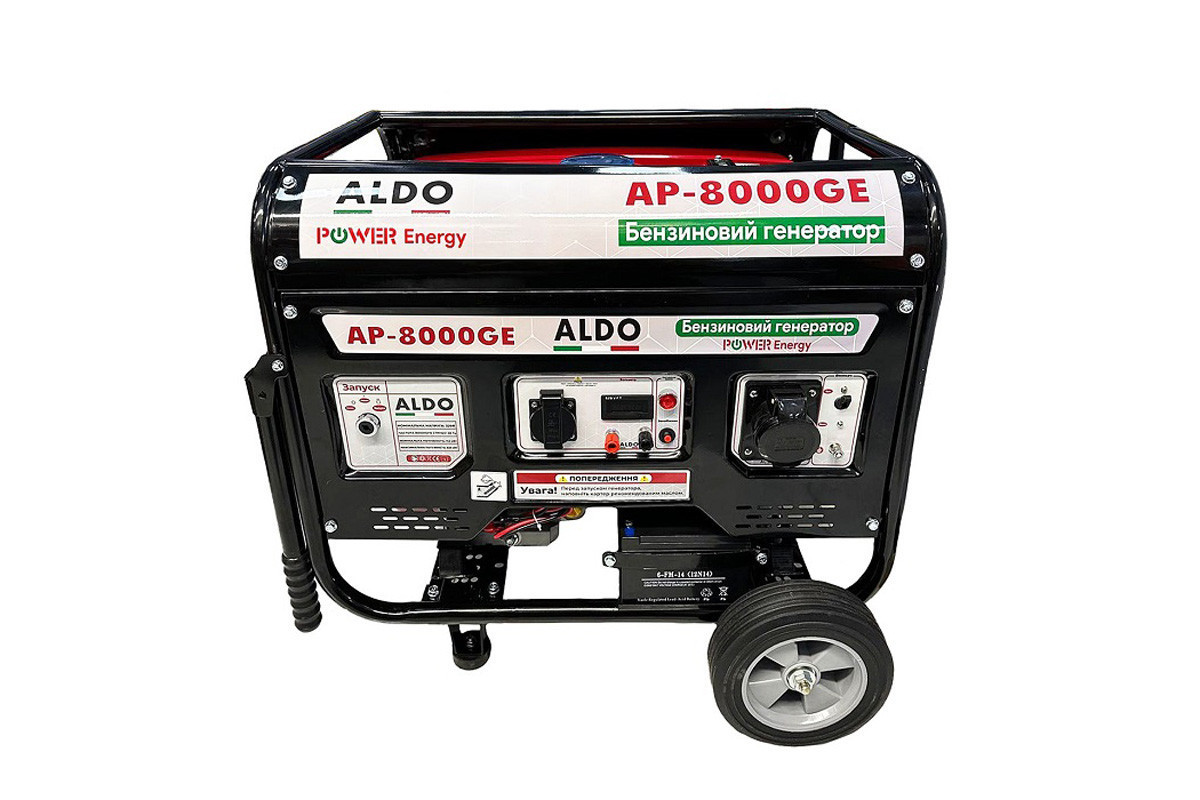 - Простота експлуатації: модель генератора ALDO AP-8000GE призначена для побутового використання. З управлінням нею впорається навіть користувач без досвіду.