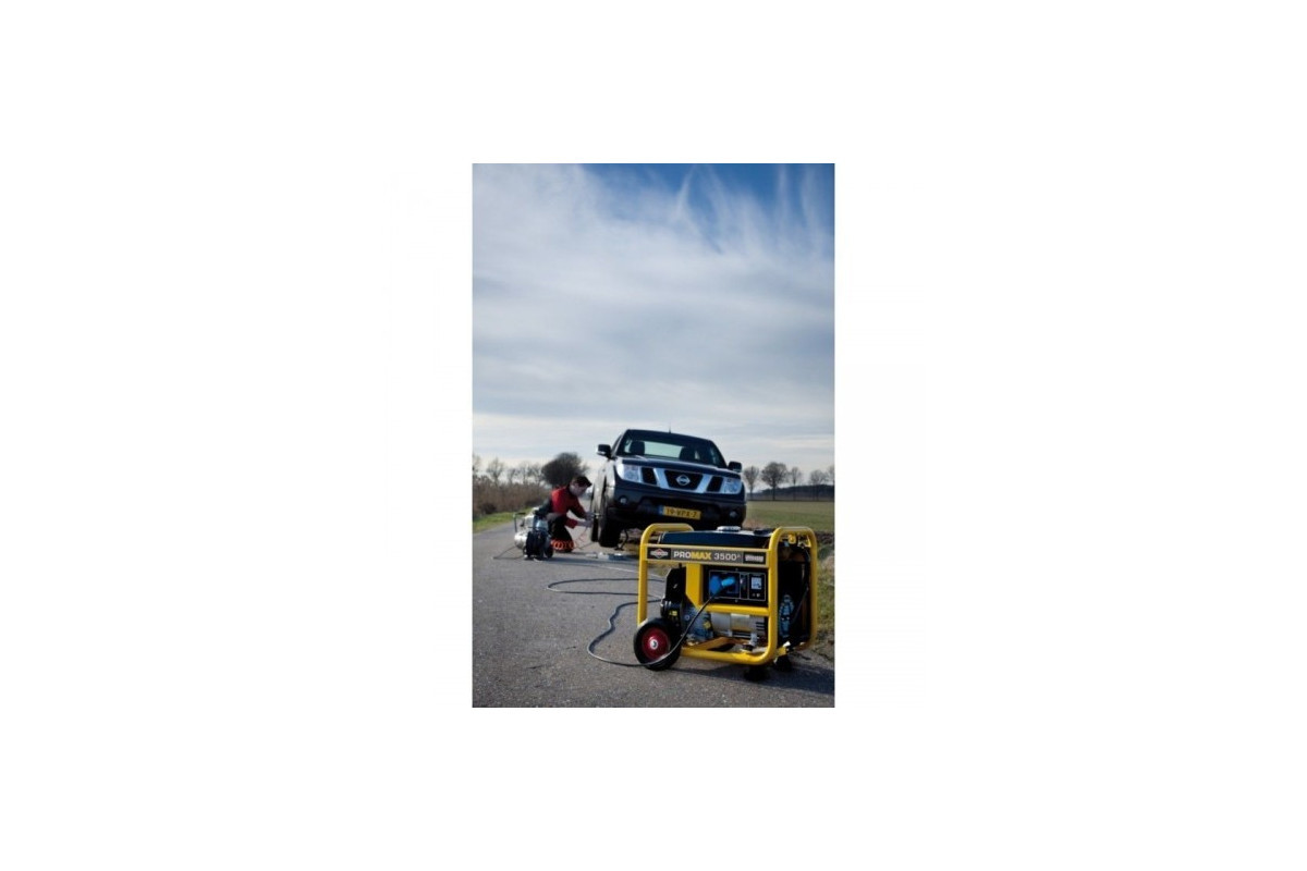 Призначення генератора Briggs & Stratton Pro Max 3500 AГенератор Briggs & Stratton ProMax 3500A може бути резервним джерелом електричного струму для забезпечення електроенергією заміського будинку, ремонтної бригади і т.д.Генератор може забезпечити електроживлення газового котла (0,5 кВт), холодильника (0,7 кВт), посудомийної машини (1,2 кВт) і т. д.