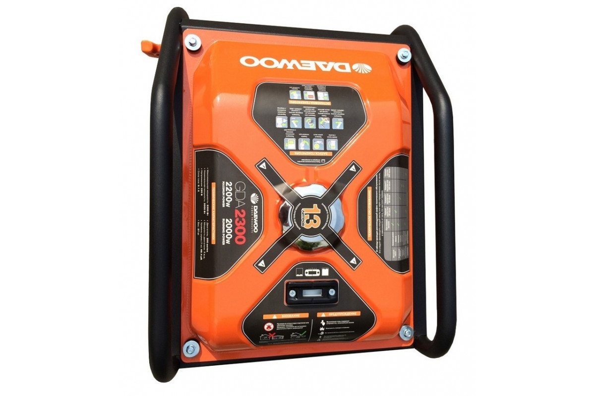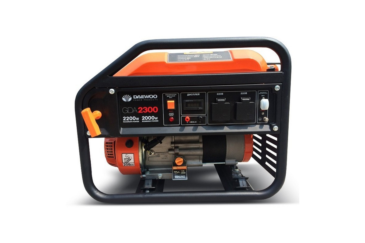 Призначення генератора Daewoo GDA 2300Генератор Daewoo GDA 2300 може бути резервним джерелом електричного струму для забезпечення електроенергією заміського будинку, ремонтної бригади і т.д.Генератор може забезпечити електроживлення газового котла (0,5 кВт), холодильника (0,7 кВт), посудомийної машини (1,2 кВт) і т. д.