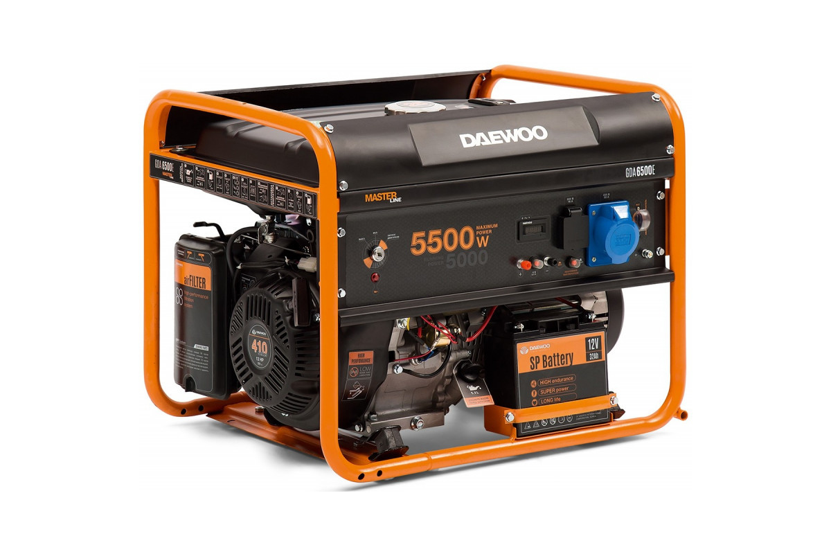 Призначення генератора Daewoo GDA 6500ЕГенератор Daewoo GDA 6500 Е може бути резервним джерелом електричного струму для забезпечення електроенергією заміського будинку, ремонтної бригади і т.д.Генератор може забезпечити електроживлення газового котла (0,5 кВт), холодильника (0,7 кВт), посудомийної машини (1,2 кВт), мікрохвильовій печі (0,9 кВт), телевізори (0,4 кВт), ноутбука (0,5 кВт), комп'ютера (0,5 кВт), освітлювальних приладів (0,5 кВт), насоси для колодязя (1,2 кВт (пускова — на 3,6 кВт) і т. д.