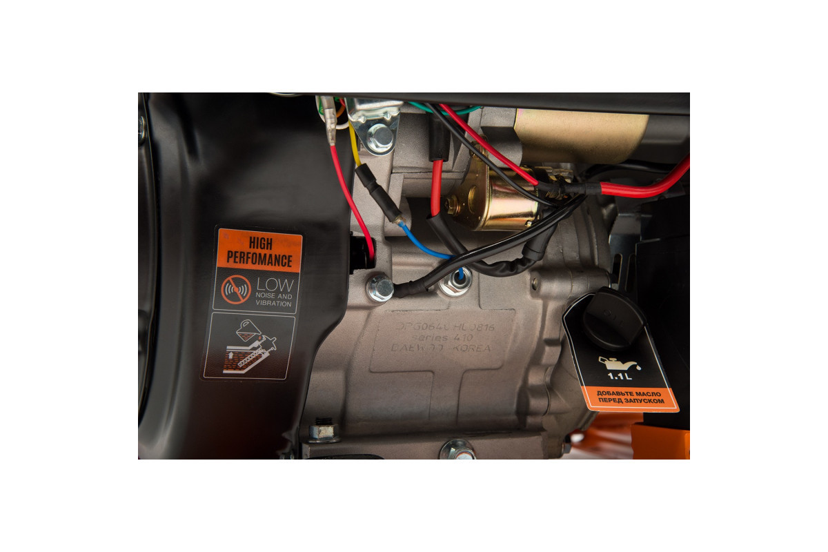 - Довгий ресурс компонентів: генератор зібраний на спеціалізованому заводі з дотриманням світових стандартів якості. Рама має антикорозійне покриття. Довговічність силового агрегату забезпечує система повітряного охолодження.